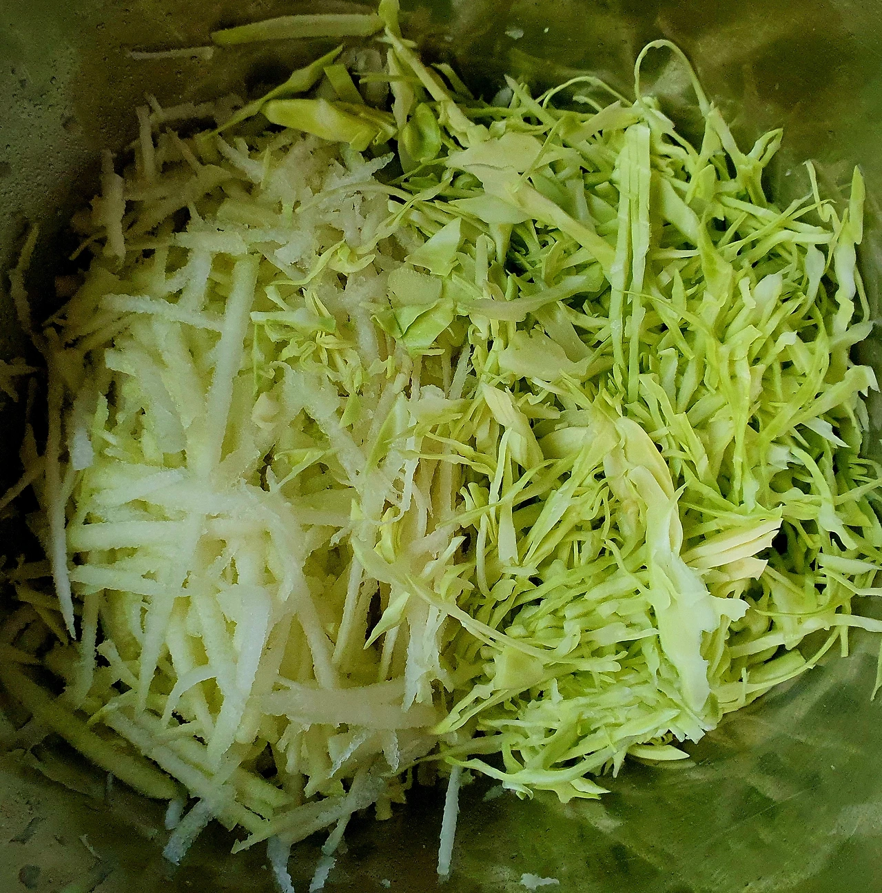 ■ 양배추. 콜라비샐러드+매실드레싱(마요네즈+매실). 파슬리가루.