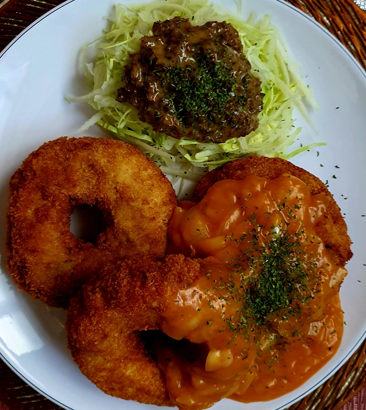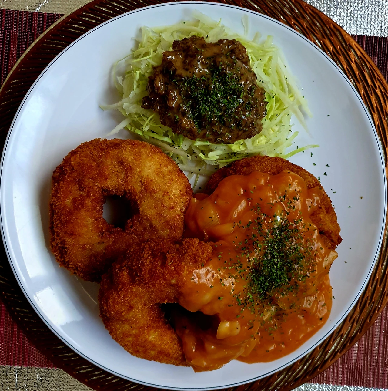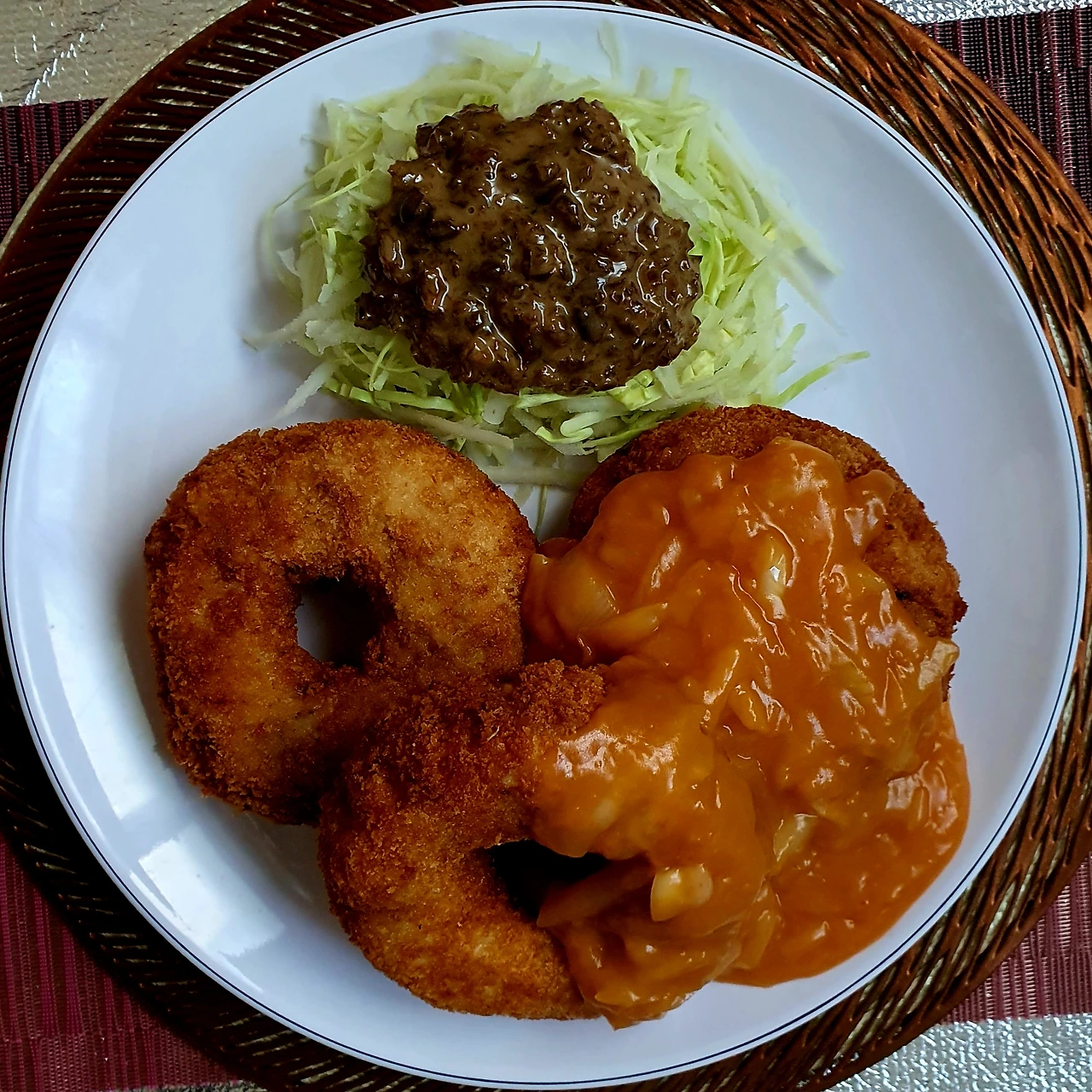 양파와 돼지고기 & 양배추와 콜라비로 오늘의 한 끼 겸 술안주로 양파링 돈가스를 생각해 봤어요!