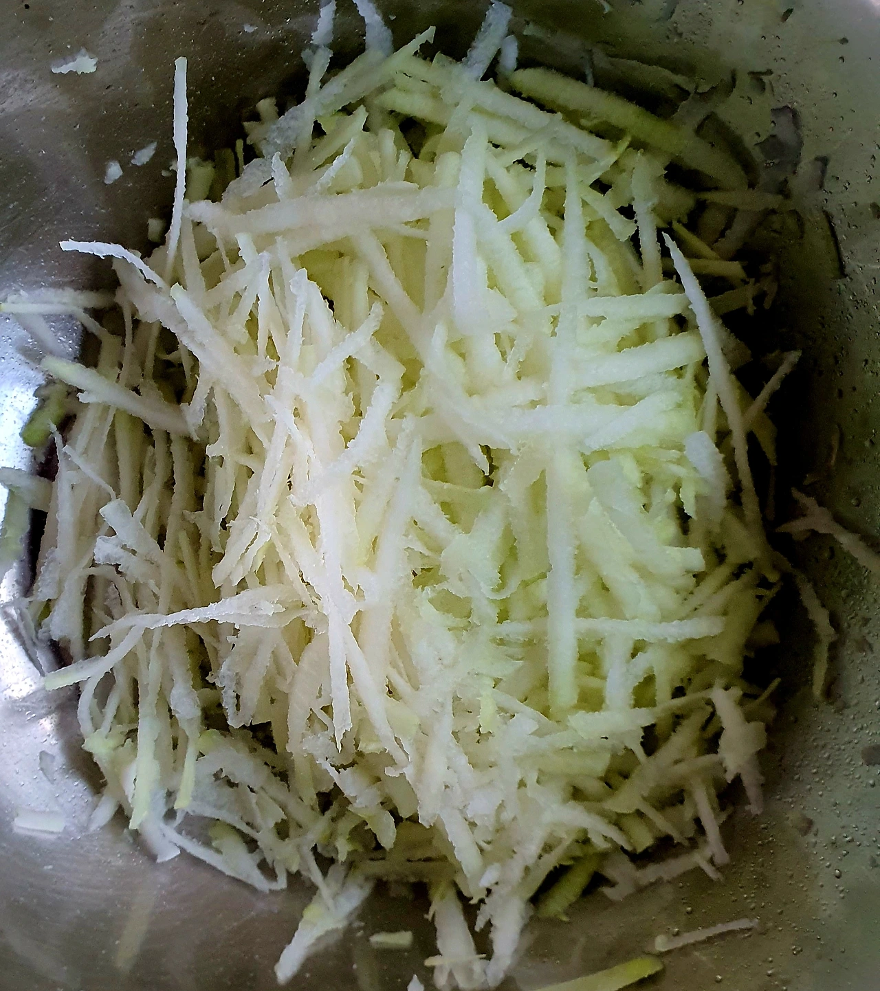 • 양배추와 콜라비를 채를 썰어 두고 마요네즈와 매실을 커터기에 넣고 갈아서 드레싱을 준비해 준다.
