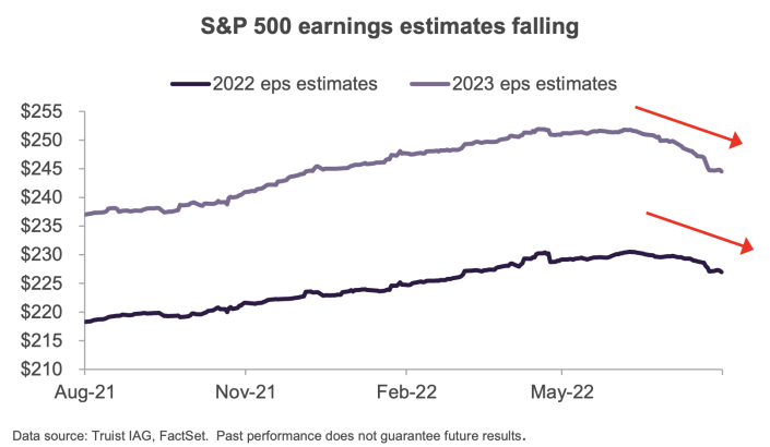 7월부터 오르기 시작한 NASDAQ 시장은 이미 베어마켓 탈출해서 20 퍼센트만 더 오르면 2021년 11월 전고점을 탈환하고 S&P 500 역시 오르고 있다. 인플레이션이 예상보다 빨리 수그러들고 그럼 미국 중앙은행도 금리인상을 더디게 조금만 할 것이라는 기대심리 때문. 그러나 주식시장의 또 다른 드라이버로서 기업 이익을 보면 앞으로 예상치보다 떨어질 것으로 본다. 그래서 2022년 4분기 말 지나면서 미국 주식시장은 또 폭락할 것으로 전망.