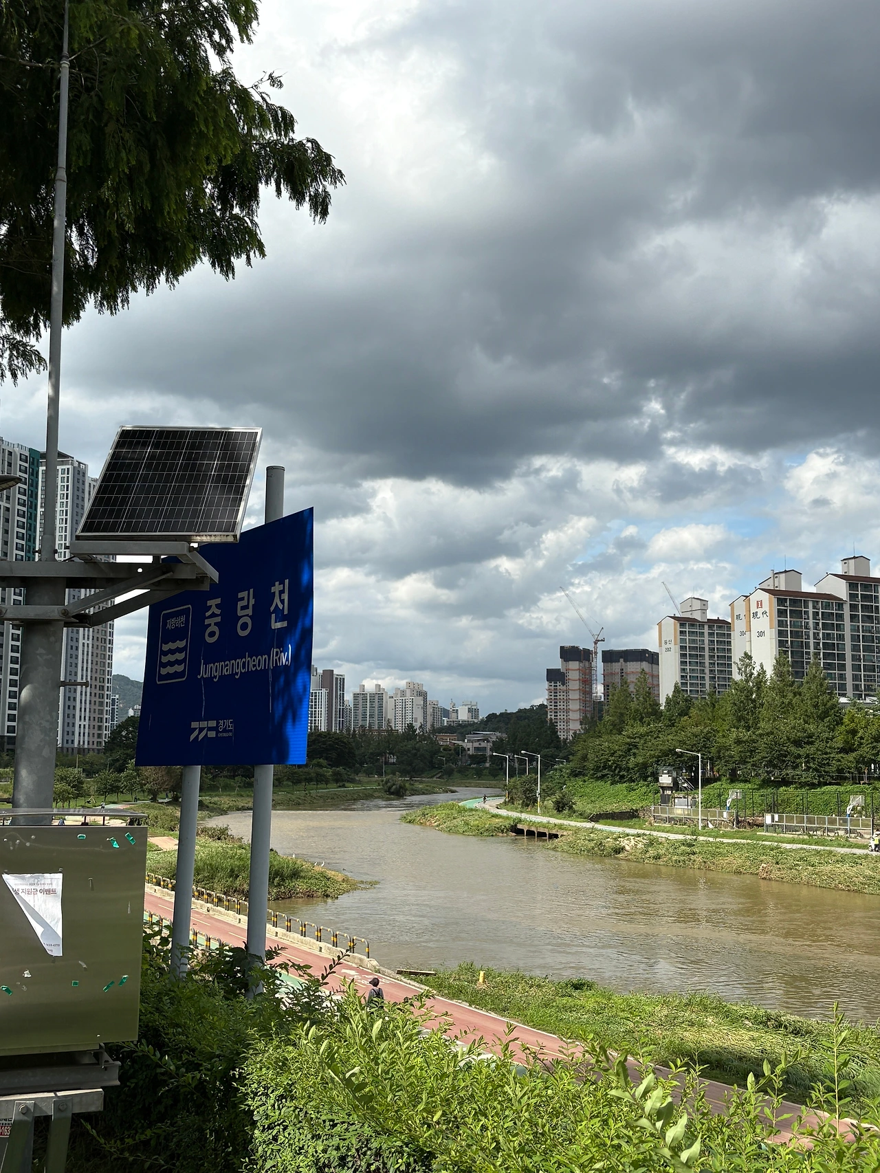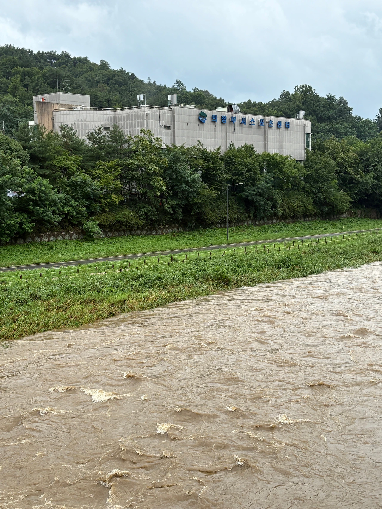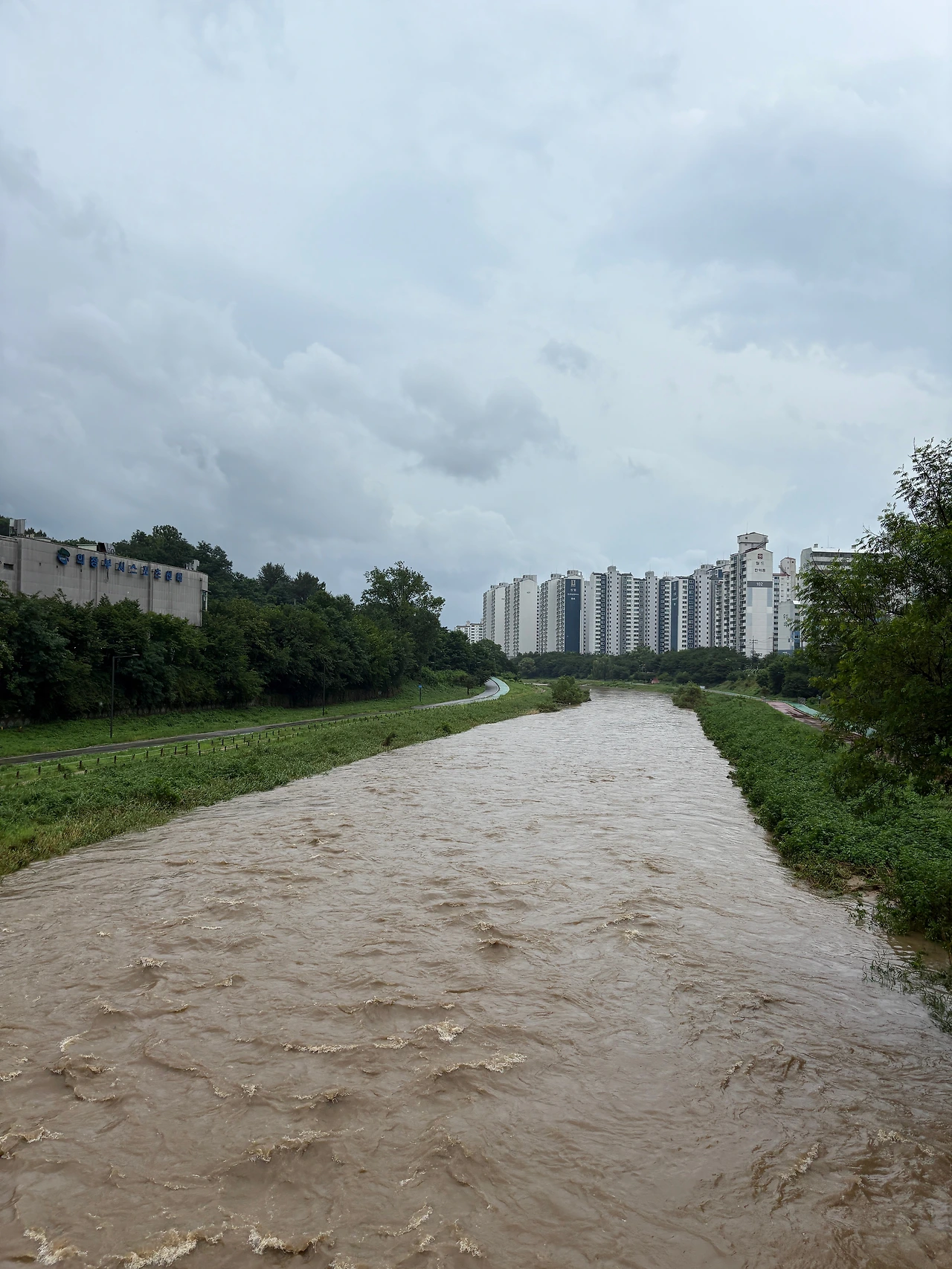 비 와서 물 불어난 거 봐라.