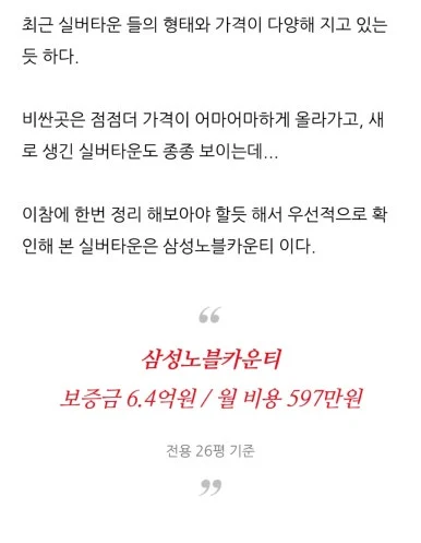 의지처를 생각하니 실버타운이 떠오른다. 오래전부터 실버타운에 관심이 많았다. 마침 카페에 실버타운 현장 답사기가 올라왔다. 삼성 노블카운티와 더클래식 500. 개인적으로는 둘 다 비싼 곳이라서 실버타운 리스트에 올려놓지 못한 곳이긴 했지만, 궁금해서 다시 확인을 해보았다. 삼성 노블카운티는 보증금 7억. 은행에 맡기면 이자만 해도 한 달에 200만 원은 되는 돈이다. 거기에 월 600만 원이 드니 한 달에 800만 원을 내고 사는 꼴이다. 더클래식 500은 더 하다. 9억이면 이자만 얼마냐. 200만 원도 넘는다. 생활비까지 합치면 800 이상 들겠다. 돈만 내고 손가락 빨 수도 없으니 개인 용돈도 있어야 할 것 아닌가. 한 달에 월천은 되는 월천대사들이 들어가야 하는 곳이 맞겠다.
