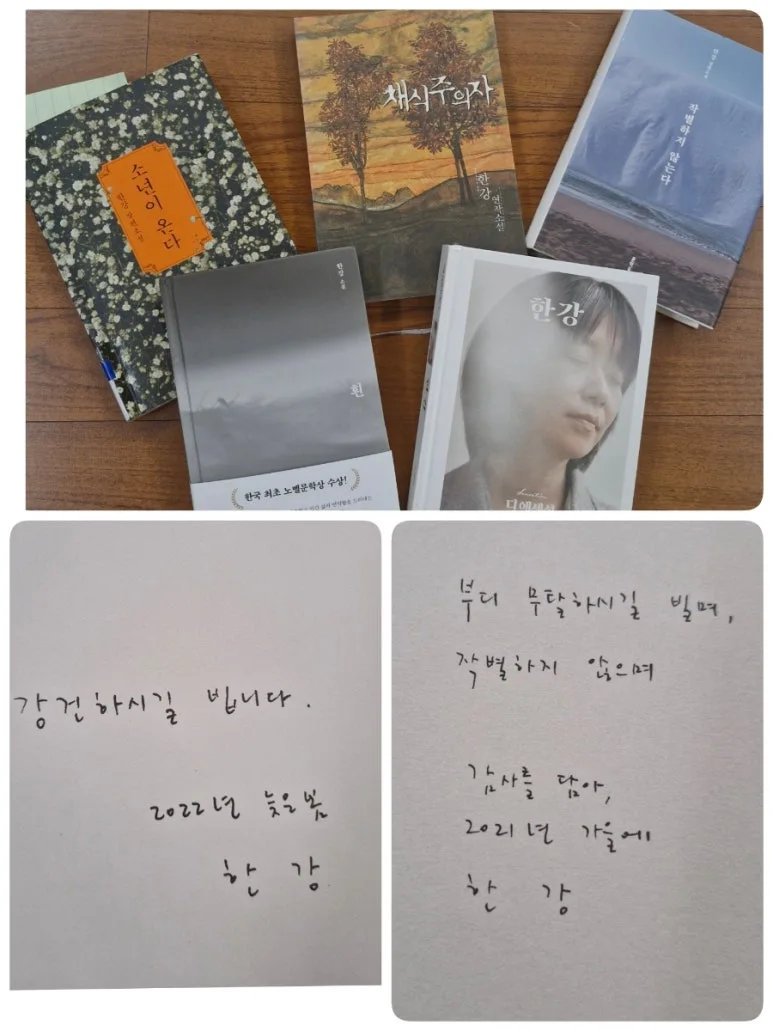 소설은 서사에 집중해서 주로 사건을 기억하게 된다. 작품이 신선하거나 느낌이 좋았다면 작가에 대한 인상도 또렷하게 남아서 그 작가의 작품을 발견해 읽곤 한다. 한국 최초의 노벨상 작가 한강을 알고 좀 더 깊이 있게 알고 싶었다. 예전에 읽었던 책들을 다시 꺼냈다. 다른 소설에 비해서는 공들여 읽은 책들이지만, 기억이 단단하지는 못하다. 작품보다 오히려 작가를 분석하고 싶었던 기억이 선명하다.