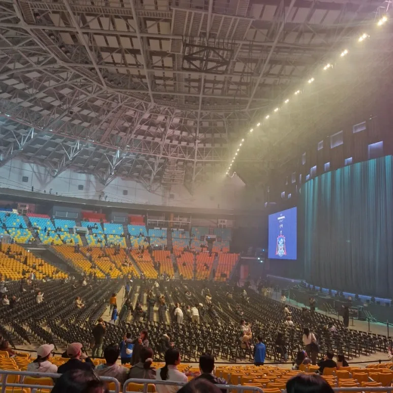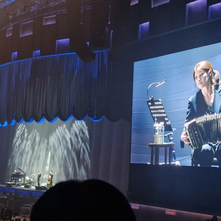 지휘자의 멋진 손짓을 따라 다양한 현악기와 관악기가 어우러진 오케스트와 연주와 더불어 기타리스트가 몇 명인지 대형 화면으로는 세기도 어려운 많은 기타리스트와 다양한 악기 연주자들이 만들어 내는 멜로디와 리듬은 2만 명이 수용하는 (아무리 음질이 좋다고 해도 울림이 있을 수밖에 없는 ) 경기장임에도 불구하고 끝내준다.
