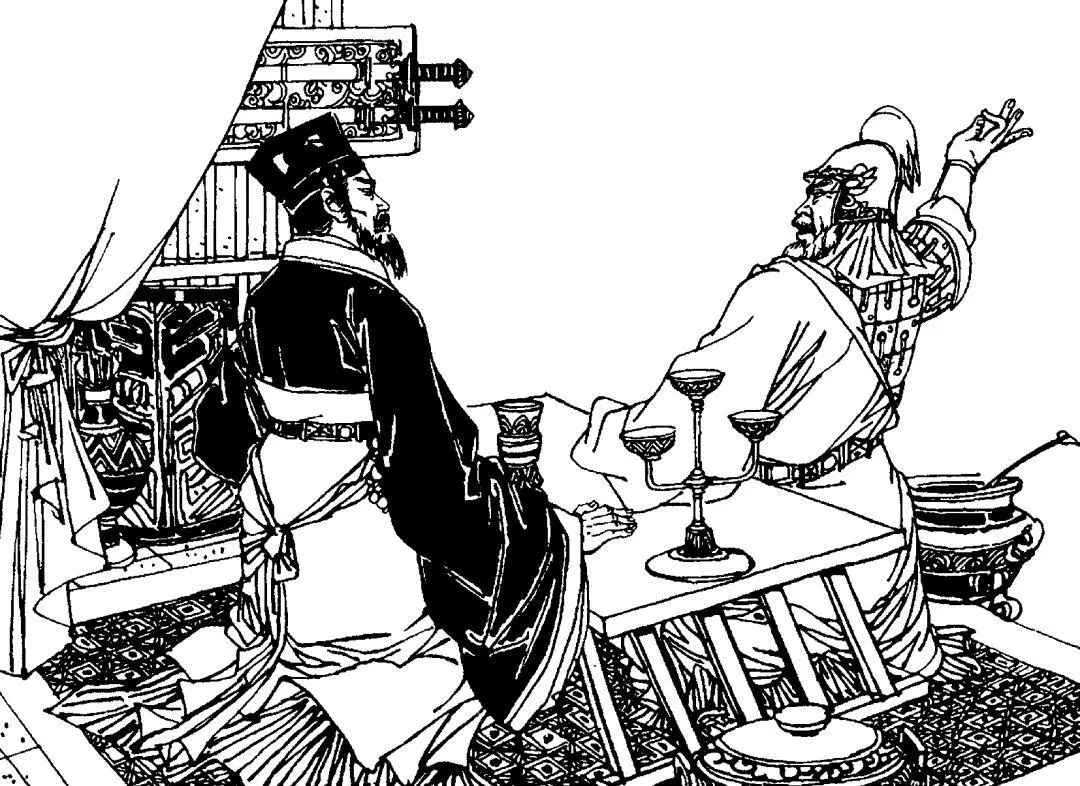 도면. 우경은 일반에 잘 알려져 있지 않은 인물이지만 곤궁한 처지에도 책을 남기는 좋은 선례를 남겼다. 평원군과 대화하는 우경의 모습을 그린 그림이다.