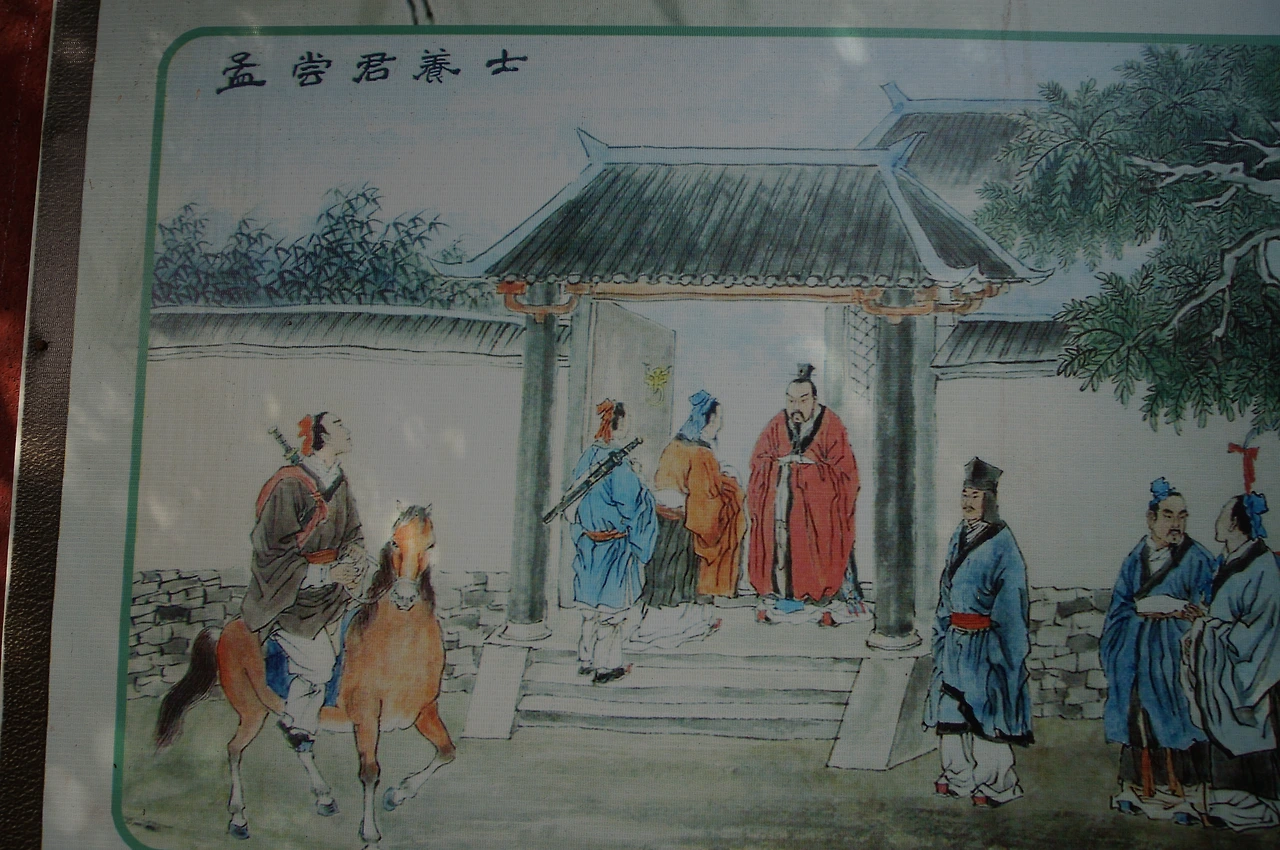 도면. 맹상군은 풍환이란 식객의 모략에 따라 넓은 아량으로 떠났던 식객들을 다시 받아들였다. 리더에게 있어서 아량은 가장 기본적인 덕의 표현이다. 사진은 맹상군 무덤 입구에 조성되어 있는 맹상군과 식객들의 기록화이다.