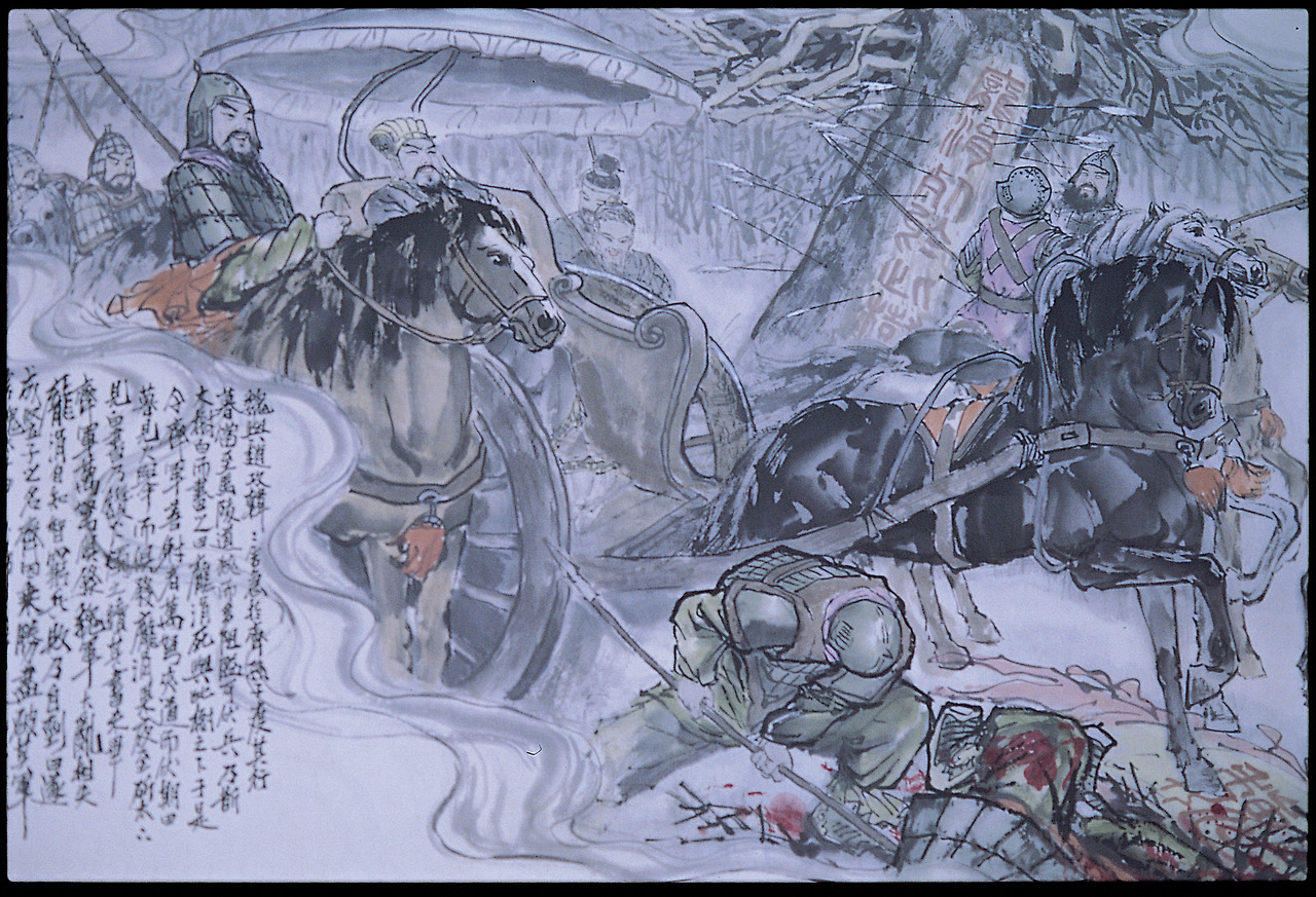 도면. 실제와 실질보다 명성이 앞선 자들의 공통점은 자기보다 뛰어난 사람들에 대한 극도의 시기와 질투에 사로잡혀 있다는 사실이다. 전국시대 방연(龐涓)은 자기보다 뛰어난 손빈(孫臏)을 질투하여 그를 해쳤으나 끝내 손빈에게 보복당해 자결로 생을 마감했다. 그림은 두 사람의 마지막 전투인 마릉(馬陵) 전투의 모습이다.