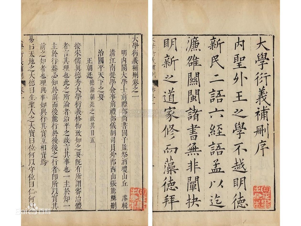 도면. 《대학》은 《논어》, 《맹자》, 《중용》과 함께 유교 4대 경전인 4서의 하나로 자기 수양의 완성과 사회 질서의 수립에 관한 이론서이다. 도면은 《대학연의(大學衍義)》 판본이다.