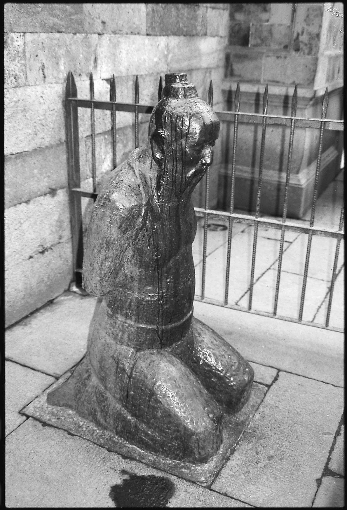 사진4. 악비와 악운의 무덤 앞에 무릎을 꿇은 채 영원히 역사에 사죄하고 있는 진회의 철상이다. 역사의 법정에는 공소시효가 없다.