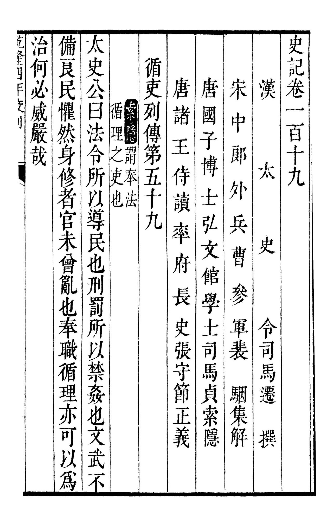 도면3. 사마천이 남긴 최초의 청백리들에 대한 기록인 <순리열전>의 첫 부분이다.(청나라 때 판본)