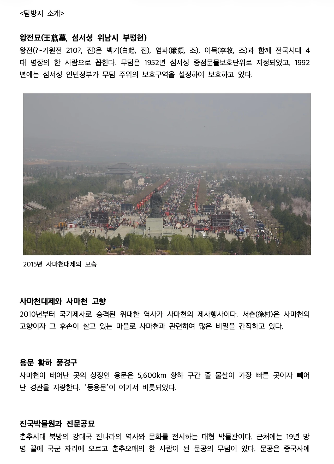* 인솔: 김영수교수(한국사마천학회 이사장)