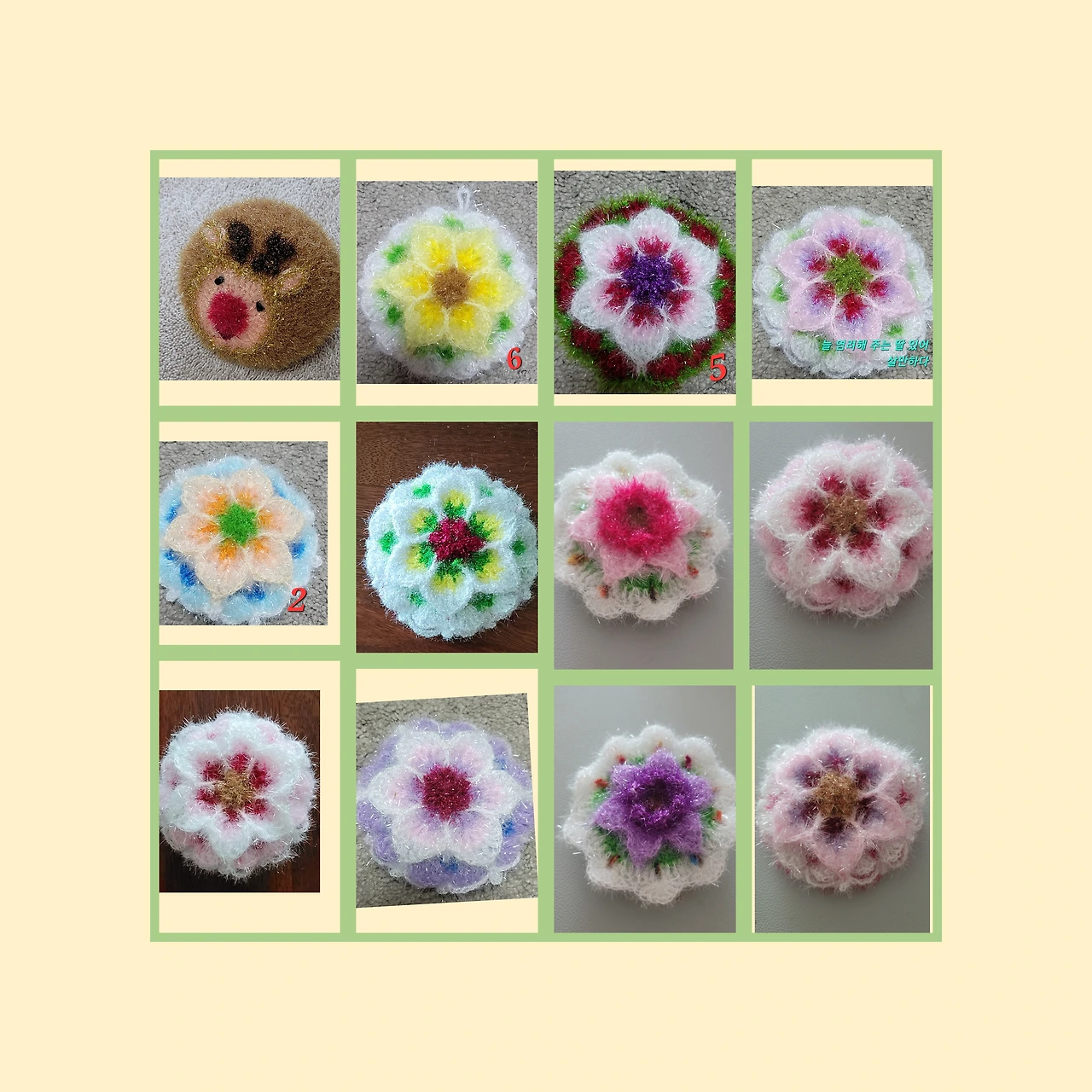 예쁜 꽃 수세미를 많이 떠서 나누어 줄 것이다. 집집마다 날아가 더러움을 씻어 주는 예쁜 손이 되어 주기를 바라면서.