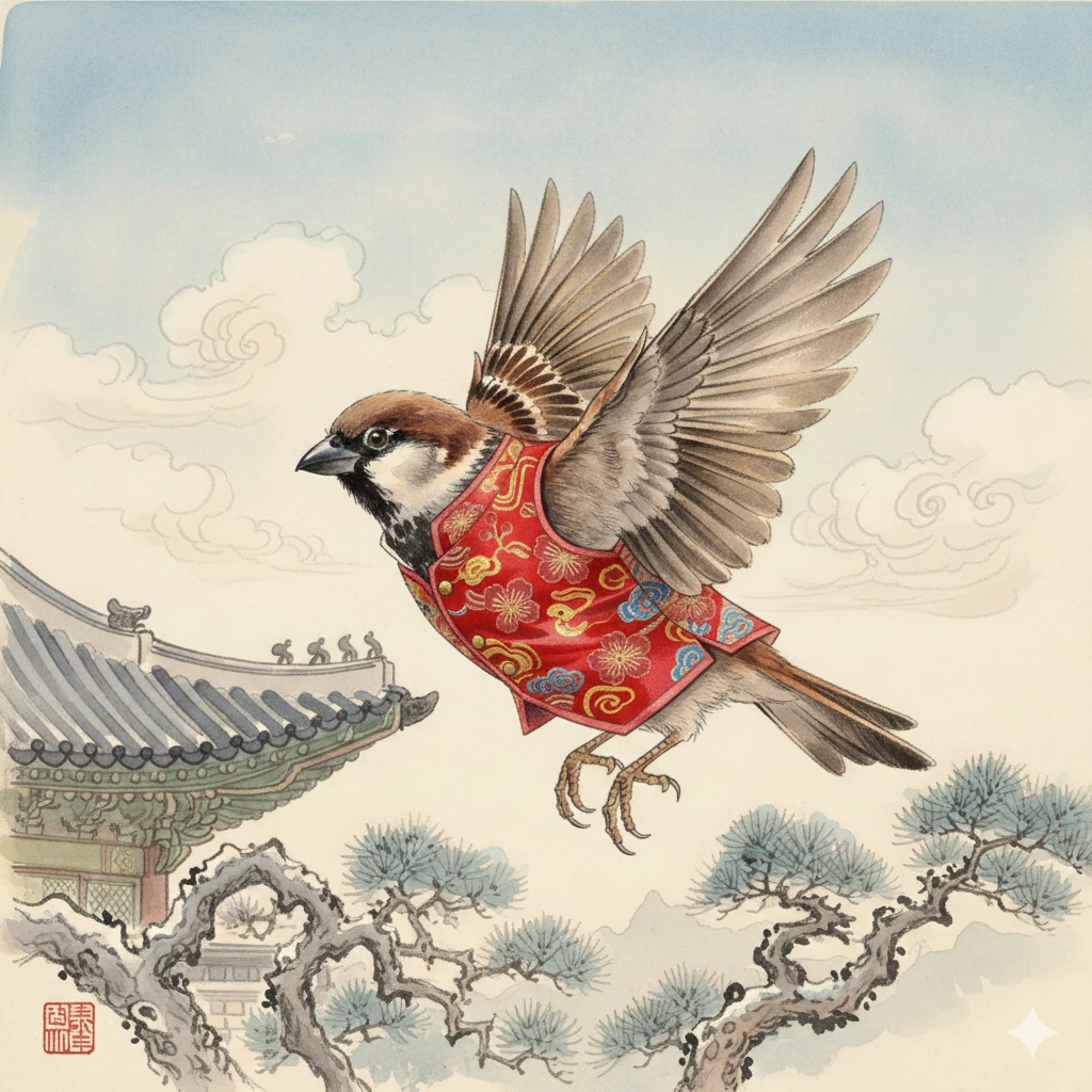 우리는 조끼 입은 참새를 데리고 밖으로 나갔다. 대문을 나서면 온 동네가 놀이터였던 시절, 우리는 보물이라도 쥔 듯 참새를 두 손으로 감싸 쥐고 걸었다.