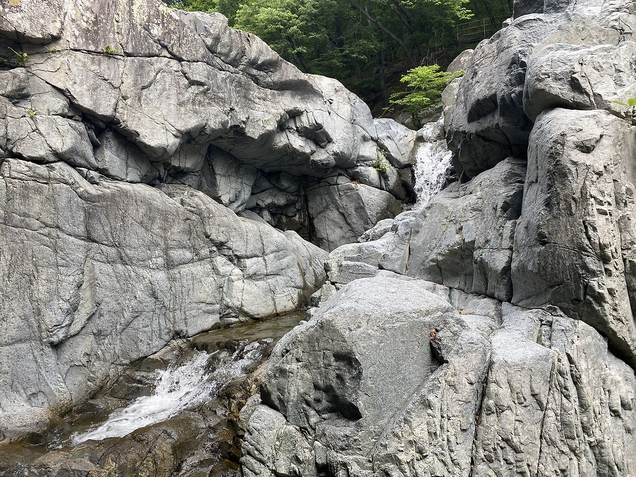 잠룡폭포 바로 위가 다섯 번째 무풍폭포다. 무풍폭포는 높이가 높지 않은 것도 있지만 바로 위 관음폭포를 에워싼 바위절경과 도저히 자연이 만들었다 믿기지 않는 절경에 취해 놓치고 지나치기 십상이다.