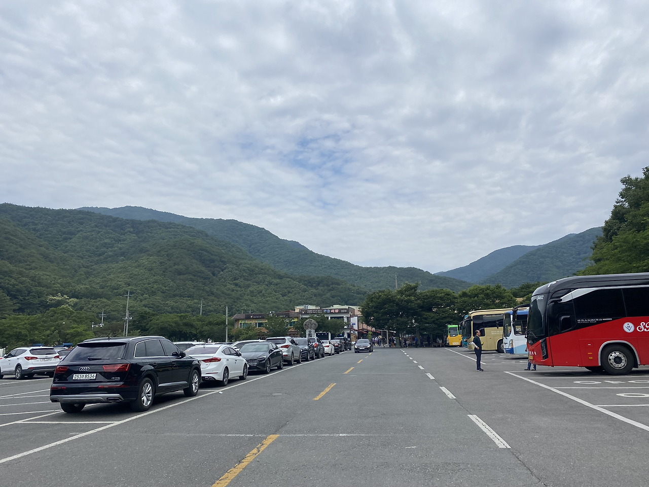본격적인 여름이 오기 전에 계곡 여행 겸, 경북 포항 내연산에 다녀왔다. 보경사 주차장에서 출발하여 12 폭포를 모두 보고 향로봉, 삼지봉, 문수봉을 돌아 원점으로 돌아오는 약 20km , 7시간 정도의 일정으로 산행을 계획했다. 오는 길에 편의점에 들러 삼각김밥 3개를 배낭에 담고 아침 9시 반경 보경사 주차장에 도착했다. 주차장은 벌써 관광차들과 많은 사람들로 북적인다.