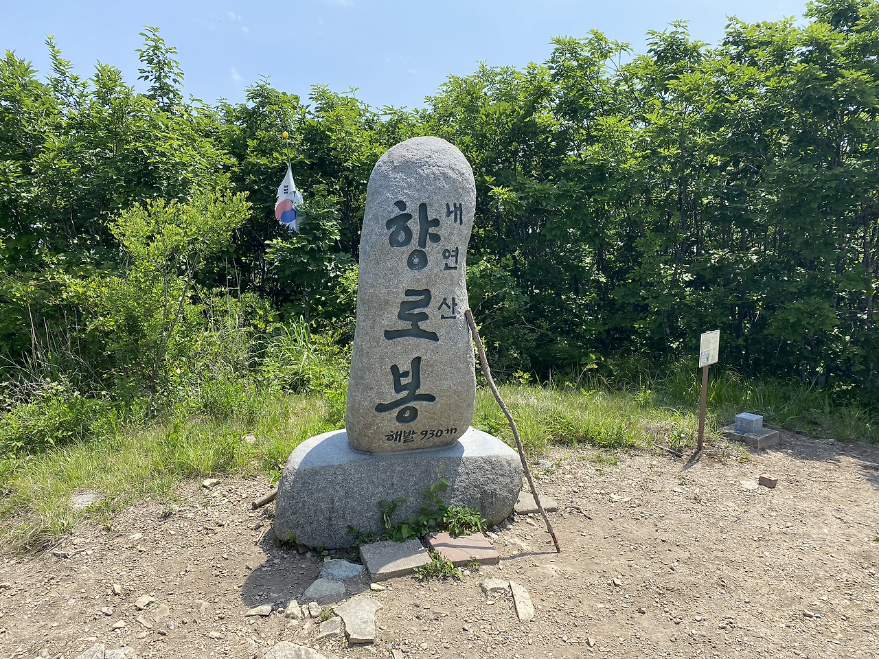 이 열두 번째 시명폭포를 끝으로 폭포는 모두 본듯하다. 다만 내가 본 폭포가 모두 맞는지는 알지 못한다. 이젠 틀려도 할 수 없다. 다시 등산로를 타고 한 시간여를 가니 갈림길 이정표가 나온다. 시명리와 향로봉으로 갈리는 지점이다. 아무 생각 없이 향로봉으로 향했다. 여기서 시명리방향으로 갔어야 한다. 그러면 시명리를 거쳐 향로봉 정상으로 가는 길이 나올 것이다. 내가 선택한 길은 사람이 다닌 흔적도 별로 없고 오르막은 왜 이리도 길고 지루한지 잠깐씩 나무 사이로 보이는 산세를 보아도 정상과는 계속 멀어지는 듯 하니 마음이 불안하다. 내려오는 사람이라도 있으면 물어볼 텐데 사람이라곤 나뿐이다. 낯선 침입자가 궁금한 날벌레들이 눈으로 눈으로 날아들어오는 통에 내 눈꺼풀에 잡혀 먹힌 날벌레로 배가 부를 지경이다. 더는 날벌레를 피해 땅만 보고 걷기에 지쳐 고글을 쓰고 나니 좀 낫다. 그렇게 한참을 올라 재에 도착하고 보니 나는 밤나무등으로 올라와 향로봉과 삼지봉 중간쯤 어디에 도착한 것으로 보인다. 향로봉을 갔다가 다시 이곳을 거쳐 삼지봉으로 가야 한다니 대략 난감이다. 족히 2km 이상은 더 걸어야 할 판이다. 나와의 약속도 약속이고 내연산에서 제일 높은 봉은 가봐야 하겠기에 지친 다리를 끌고 향로봉으로 향했다. 다행히 능선길이라 심한 오르막도 없고 완만한 길이라 별 무리 없이 오를 수 있었다.