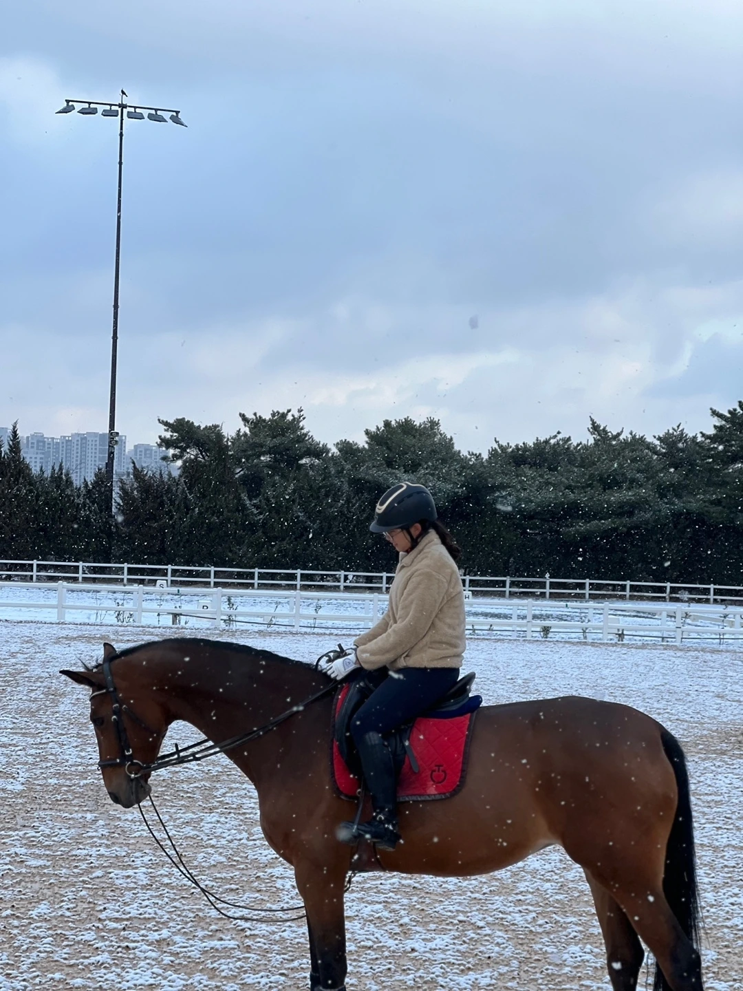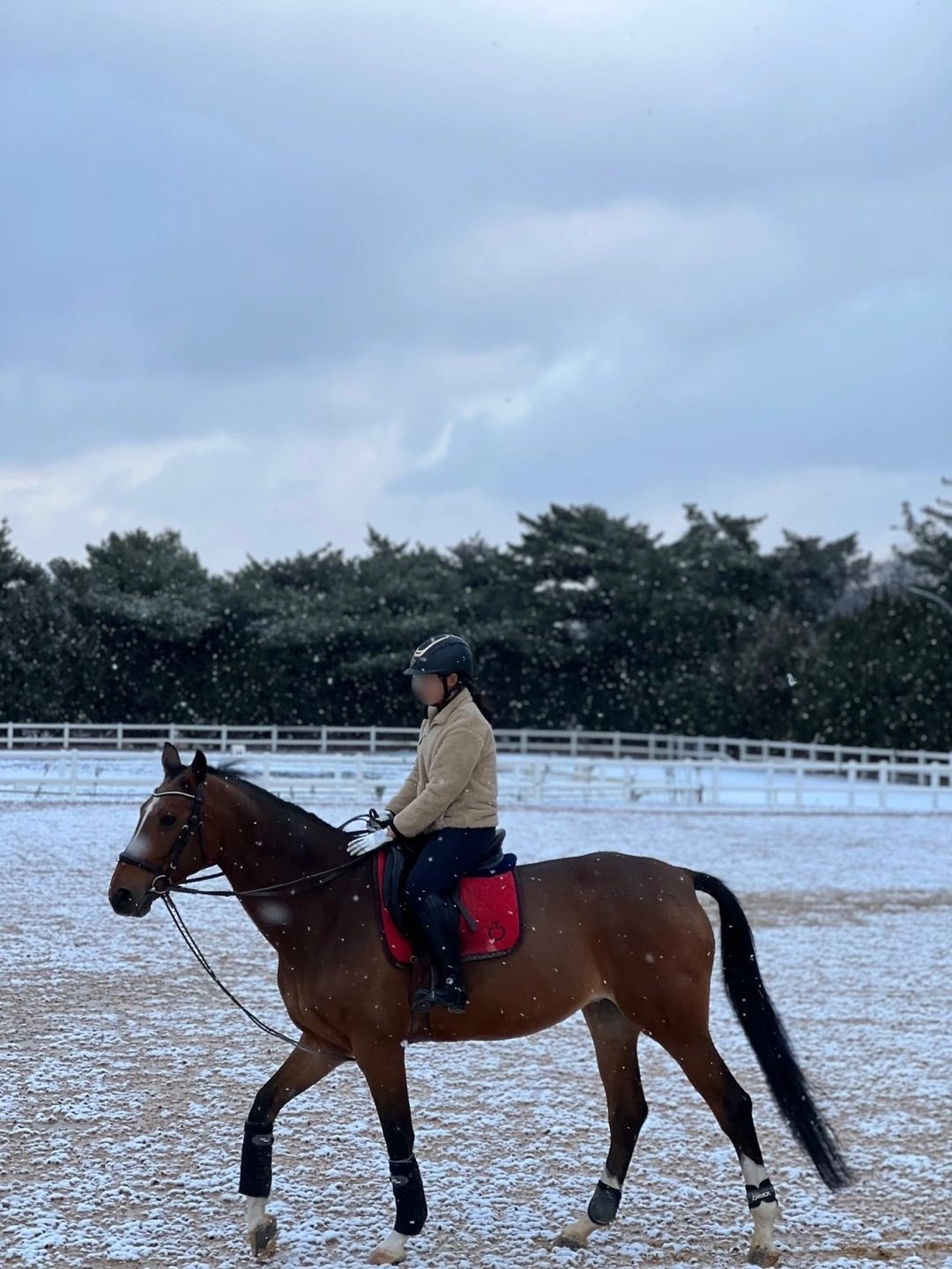 날씨가 점점 추워져가던 날, 실내 마장에서 운동을 하고 나오니 첫눈이 오기 시작했다.