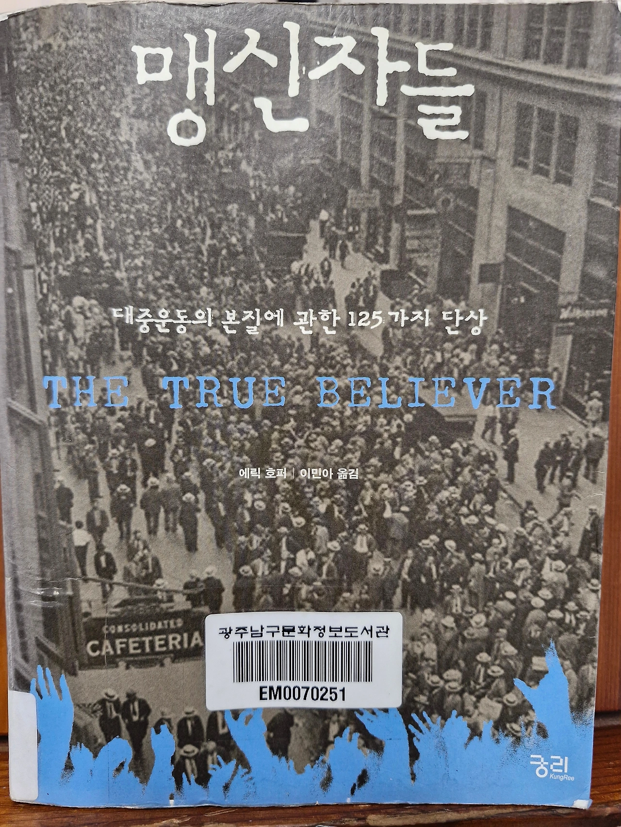 ‘길 위의 철학자’로 불리는 미국의 사회철학자입니다. 얼마 전 그의 자서전 [에릭 호퍼, 길 위의 철학자]를 접하고 급 관심이 생긴 인물입니다. 이 책은 그의 첫 번째 저서로, 그에게 엄청난 명성을 안겨준 책입니다. 70여 년 전인 1951년에 나왔으니, 제2차 세계대전으로 유럽이 황폐화된 직후에 나온 저술입니다. 오래된 책임에도 불구하고 집단 동일시에 관한 사회심리학 연구서로, 지금에도 테러리스트와 자살 폭탄자의 심리를 이해하는 지침서로 활용되고 있다고 합니다.