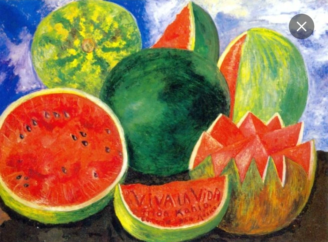 미국의 아이콘 잭슨 폴록, 본인은 굳이 아니라고 하는데도 주변 평론가들이 초현실주의자라 부른 프라다 칼로. 그녀 생의 마지막 작품인 <인생이여, 만세>를 감상하다, 지난주부터 광주의 명물인 무등산 수박이 출하를 개시했다는 소식과, 몽골 서북쪽 알타이산맥 부근 바양 울기 쪽에서만 생산되는 아이 머리통만 한 수박으로 생각의 편린이 엉뚱한 곳으로 전개됩니다. 역시 사람은 오만 가지 생각을 하는 듯.