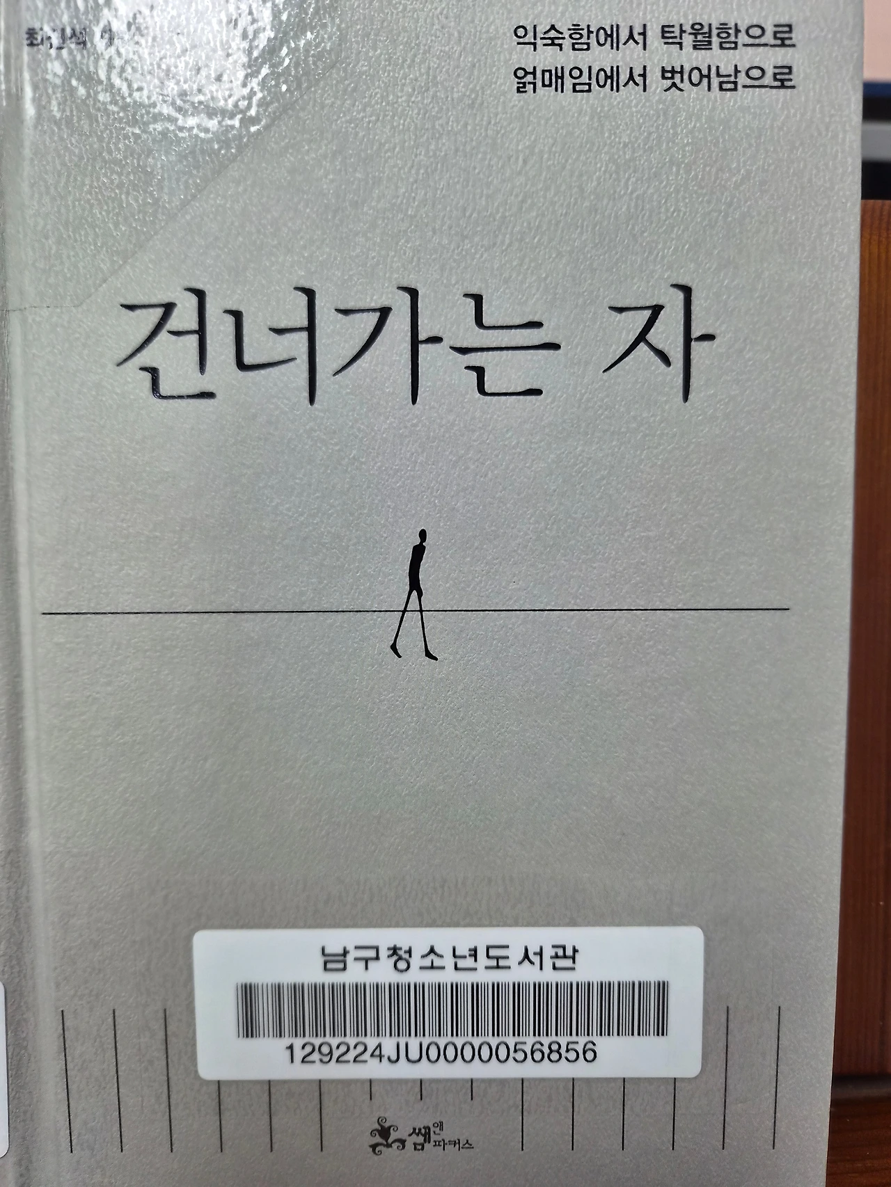 책 이름인 [건너가는 자]는 익숙한 이곳에서 저곳으로 건너가는 삶의 태도와 실천을 의미합니다. 건너자는 자는 다른 말로 ‘자유로운 자’, ‘독립적인 자’, ‘창의적인 자’, ‘주체적인 자’로도 부를 수 있습니다. 책 표지 한가운데 조그마한 사람 그림이 있습니다. 자코메티의 조각 <걷는 사람>인데요. 반야심경을 가장 잘 표현한 조각작품이라 생각되어 이 작품을 차용한 듯합니다.