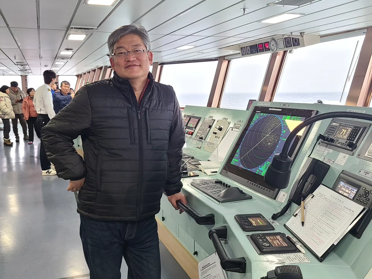육지로 오는 크루즈에 탑승했습니다. 배는 12:30분에 출발해 저녁 7시쯤 영일만항에 도착합니다. 우리가 32명의 단체였기에 선장님께서 배 제일 높은 곳인 9층 조타실로 우리 일행을 초청해 주셨습니다. 배에 대한 자세한 설명과 울릉도에 대한 이야기를 해 주십니다. 안타까웠던 2014년 세월호 사건에 대한 이야기도, 이로 인해 잠시 동안 배를 떠나 해상 안전운행을 위한 공무원으로서의 일을 하셨다고 합니다(자세한 이야기는 선장님께 누가 될 수 있을까 싶어 생략합니다).