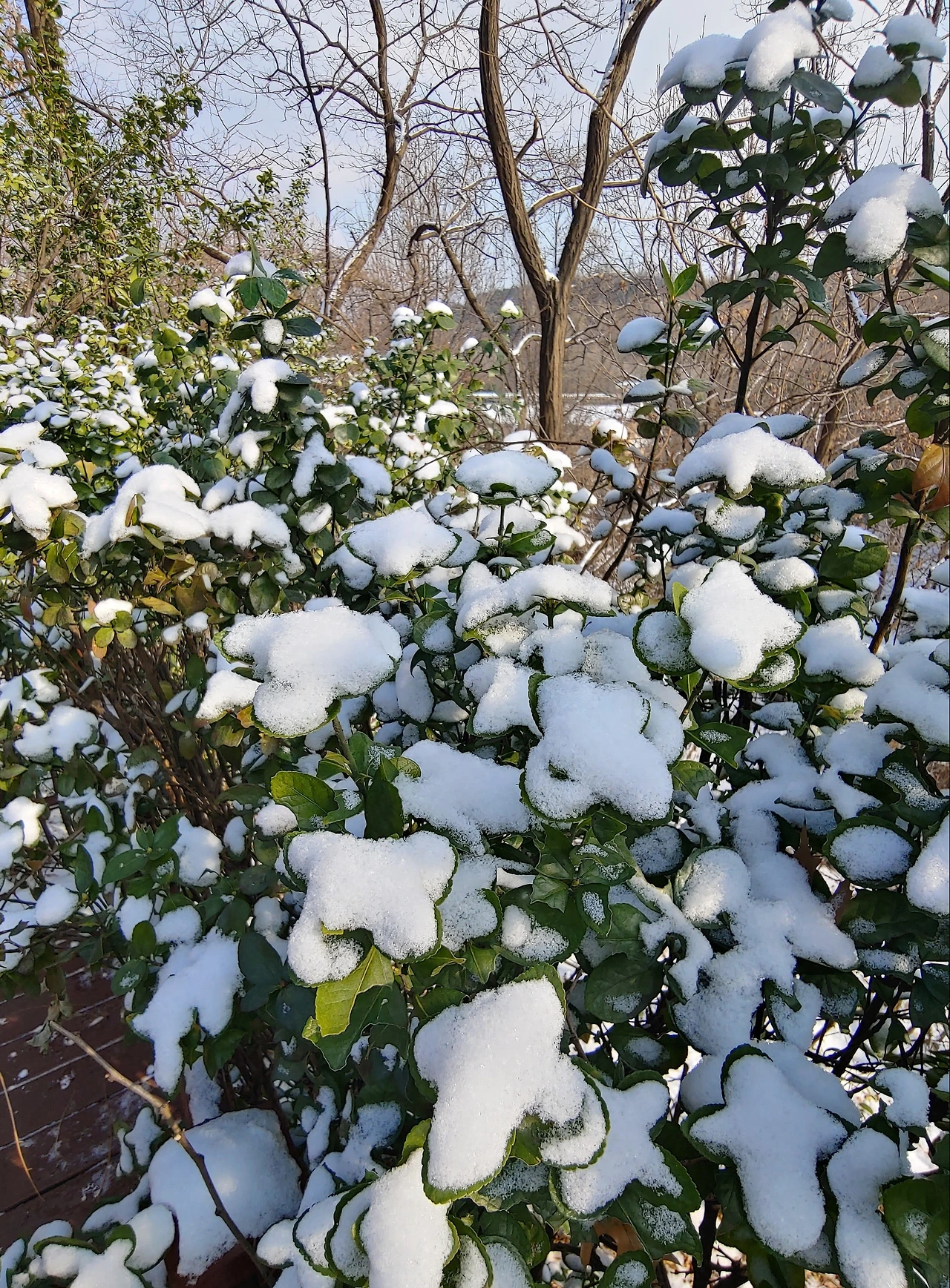 눈 속 사철나무.