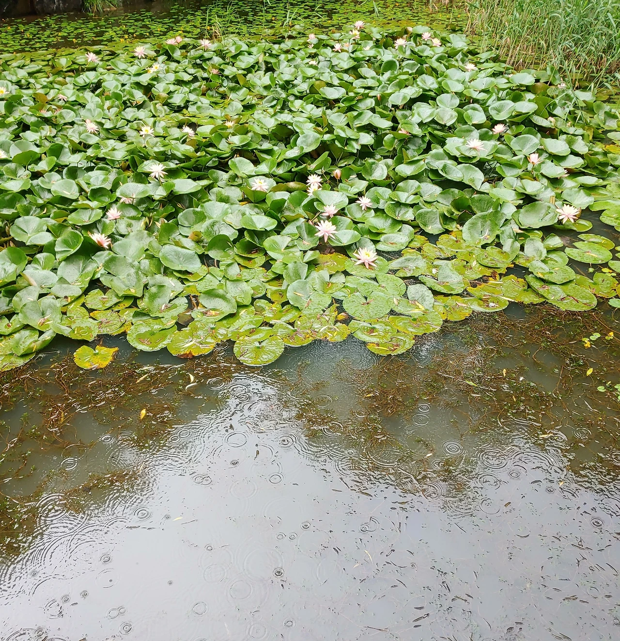 연못에 빗방울.