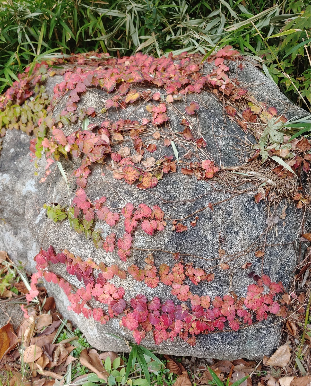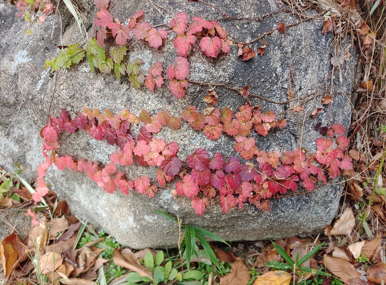 담쟁이 단풍과 바위.