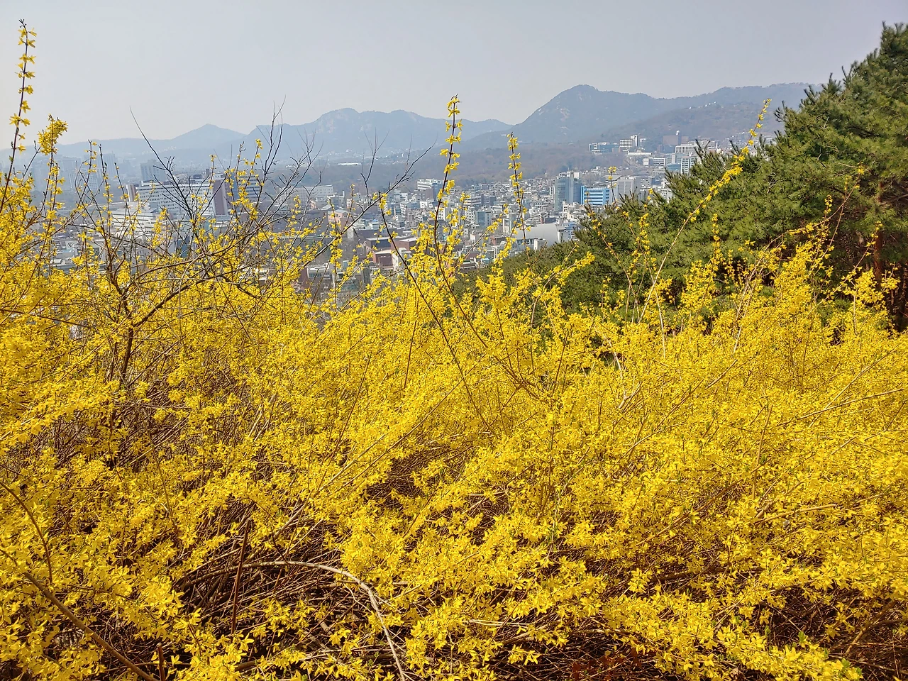 개나리꽃 핀 한양 도성.