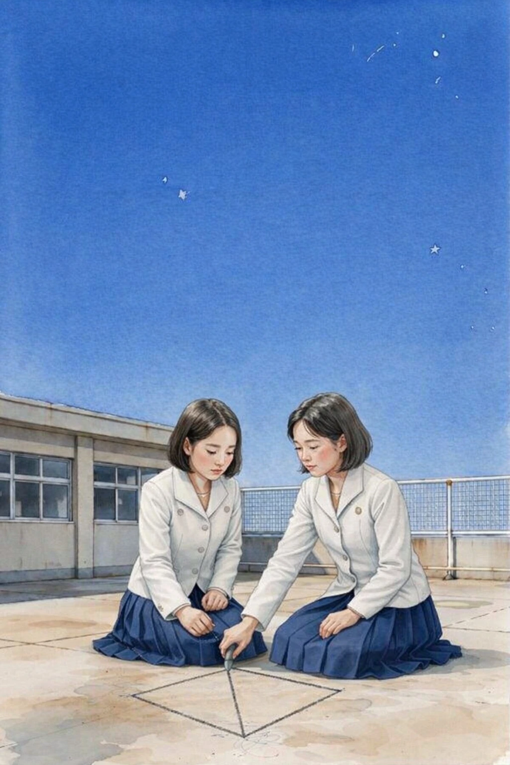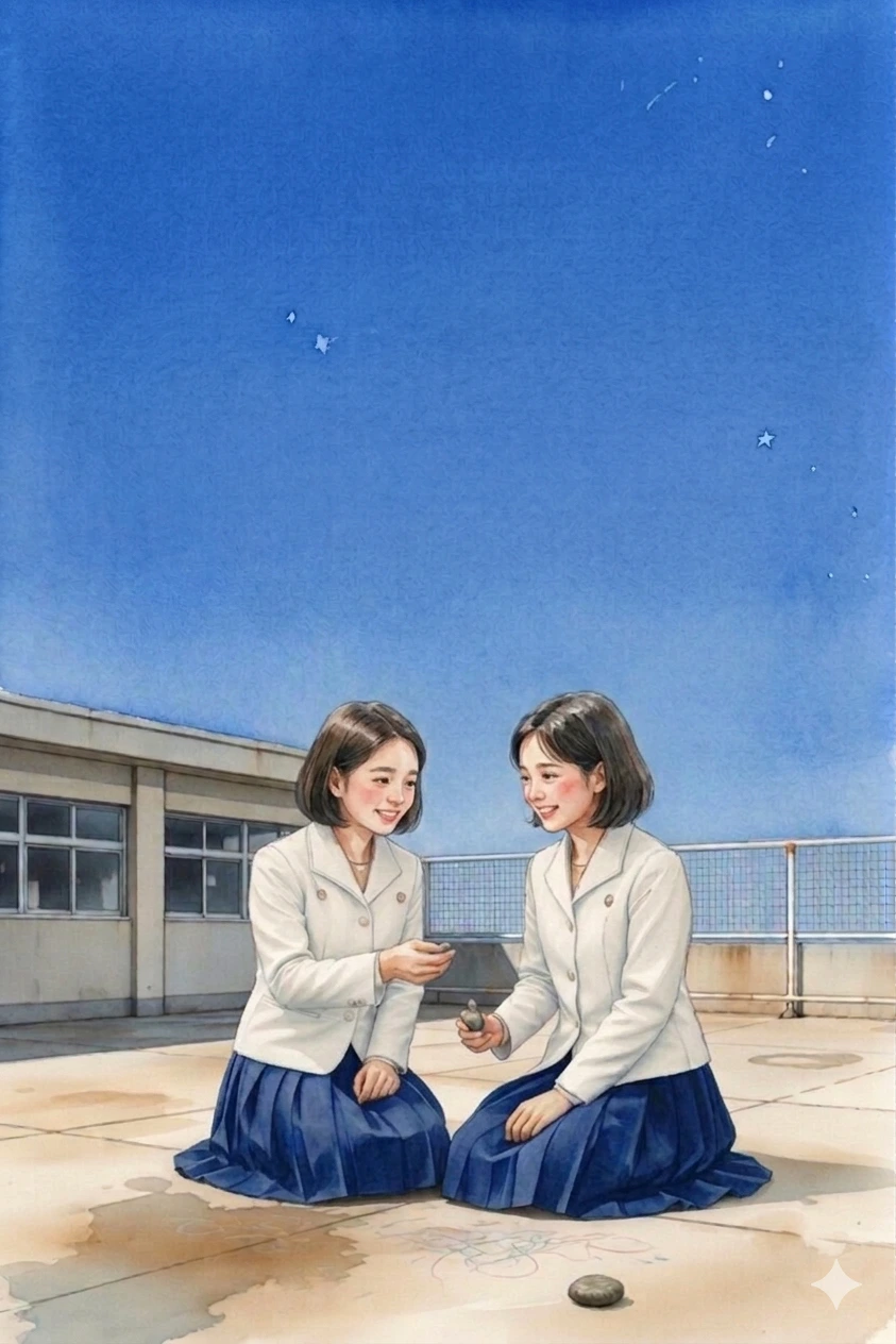 옥상의 낡은 콘크리트는 어느새 은하수의 궤적을 기록한 성도처럼 찬란하게 빛나고 있었다.