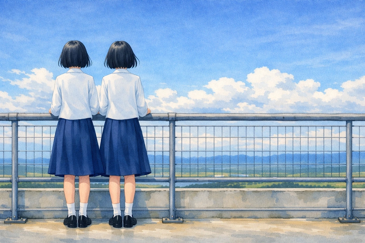 그저 세화의 시선이 머무는 곳, 6월의 파란 하늘과 맞닿은 난간 너머를 함께 바라보고 있을 뿐이었다.