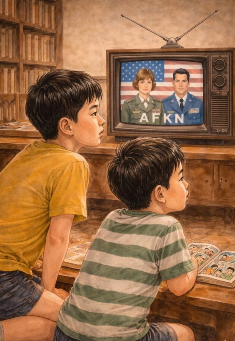 그때였다. 숨을 죽이고 안테나의 나사를 끝까지 조인 찰나, 지직거리는 소음 너머로 금지된 주파수가 벼락처럼 맞물려 들었다. 거칠게 휘몰아치던 백색 소음이 일순간 걷히며, 짙푸른 스튜디오 배경 앞에 앉은 AFKN 앵커의 선명한 넥타이와 생생한 핏빛 자막이 화면 가득 쏟아졌다. 남산은 결코 허락한 적 없는, 사직동의 낡은 지붕 아래서만 몰래 목격된 찬란한 세계의 조각이었다.