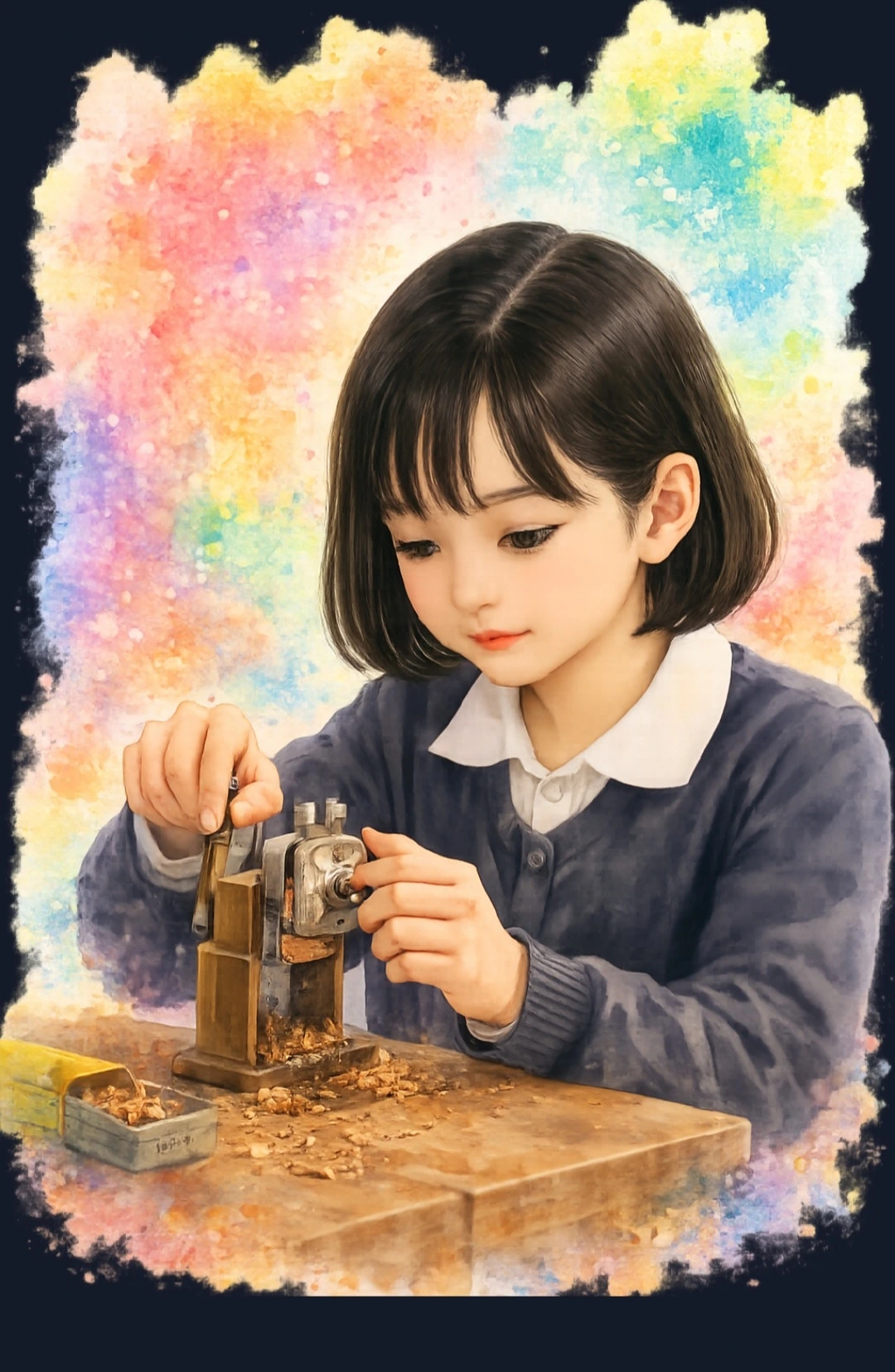 아이들에게 그것은 일상의 무료함을 달래줄 신기한 유희였으나, 세화에게 그 소음은 전혀 다른 층위의 신호였다. 세화는 연필 깎는 소리에 열광하는 아이들의 등 뒤에서, 기계 내부의 톱니바퀴가 맞물리는 각도와 모터의 회전수가 만들어내는 물리적 파형을 마치 정교한 기계로 훑어내듯 제 머릿속에 고스란히 훑어담았다.