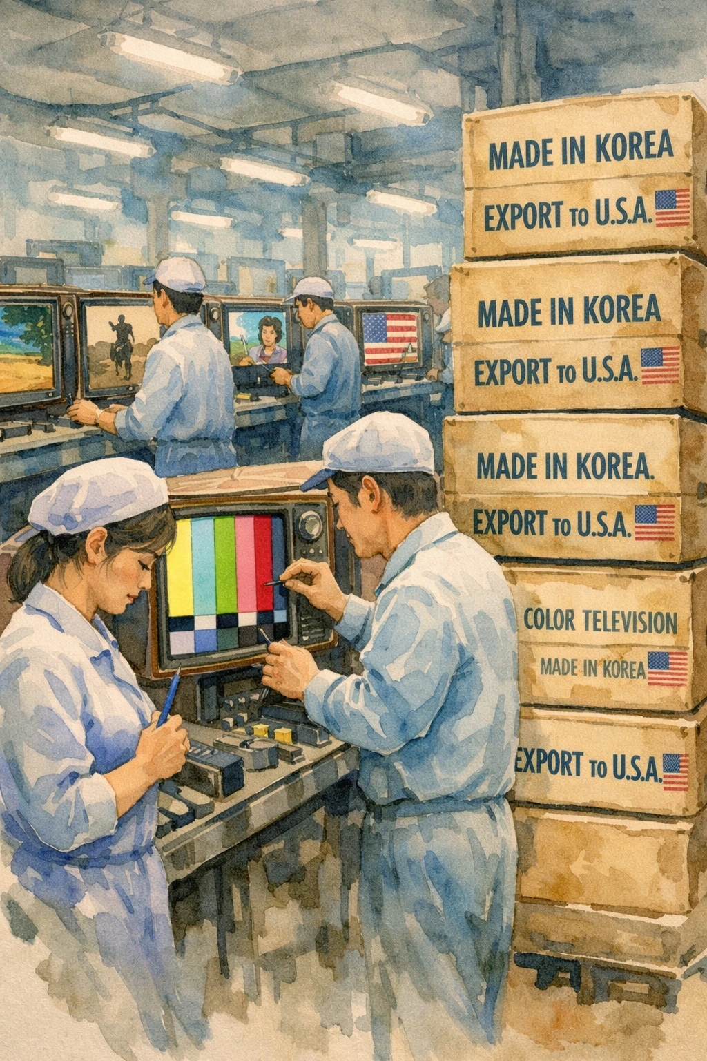1970년대까지 세상은 여전히 흑백의 질서 아래 꽁꽁 묶여 있었다. 당시 사치 풍조를 막겠다는 명분으로 컬러 방송 도입을 쉽게 허용하지 않고 있었으나, 아이러니하게도 이 땅의 공장들은 타국의 안방을 채울 컬러 TV를 밤낮없이 찍어내고 있었다. 국가는 시기를 늦추고 있었으나 기술은 이미 국경을 넘보고 있던 기묘한 불통의 시대였다.
