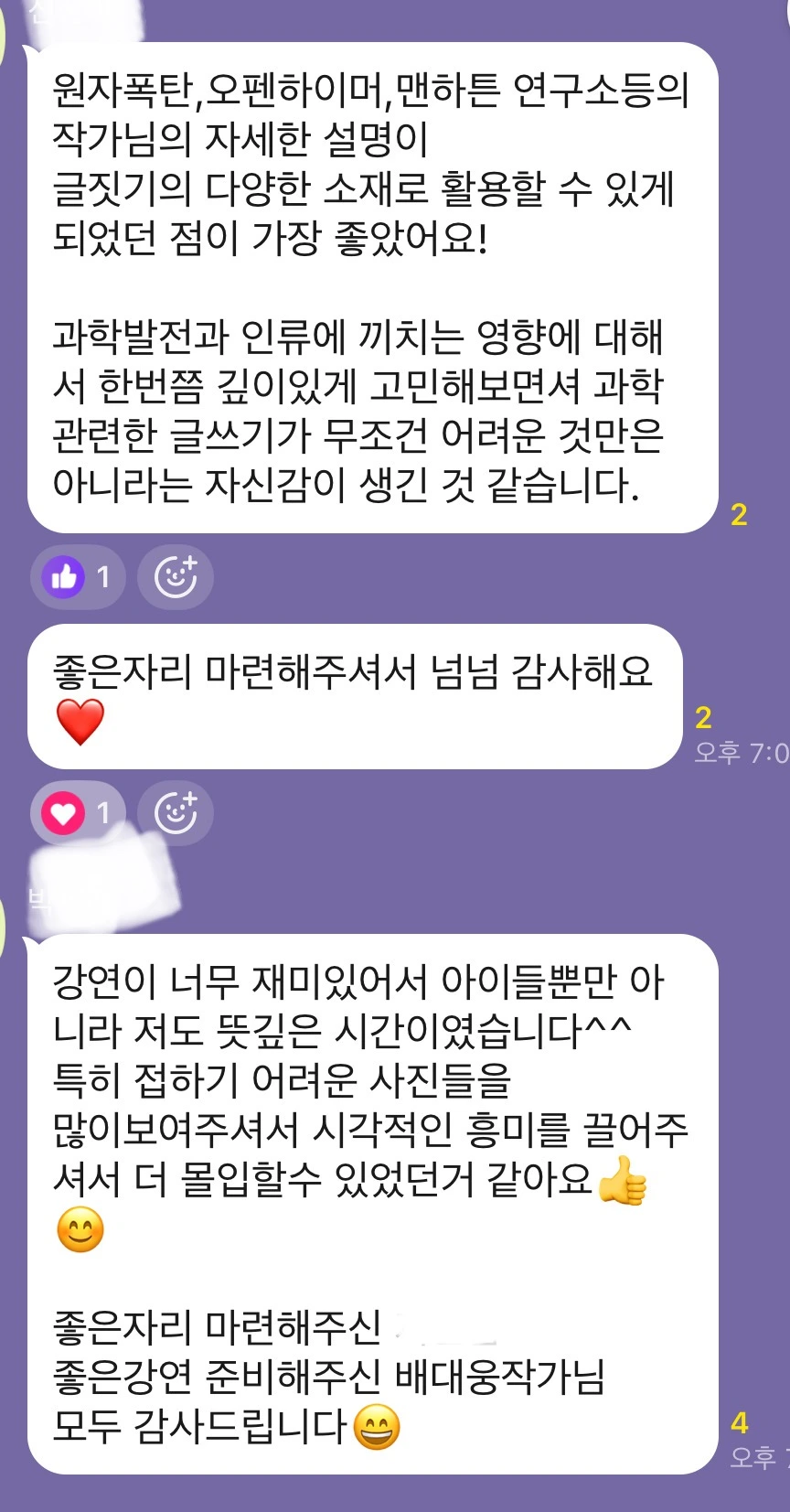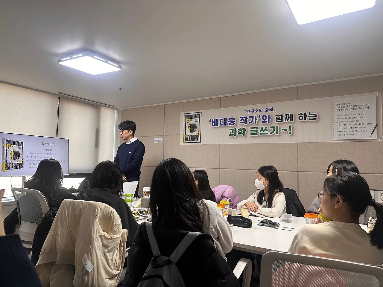 저희 독서모임 ‘중간항로’에서 [연구소의 승리]의 저자이신 배대웅 작가님을 모시고 과학 글쓰기를 진행하였습니다.