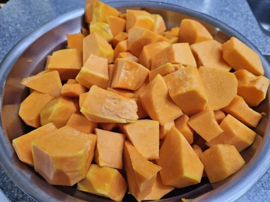 호박 손질은 쉽지만은 않다. 단단한 껍질을 벗기는 데 시간이 걸리지만, 가을 향기를 가득 머금은 건강한 자연 향내가 솔찬히 좋다.