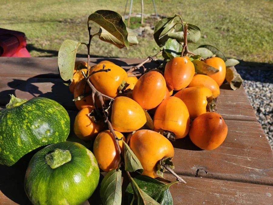 호박덩굴을 정리하며 서리 맞은 호박 두 덩이를 건졌다. 까치밥으로 남겨두었던 대봉감도 가지치기로 알뜰하게 챙겼다.
