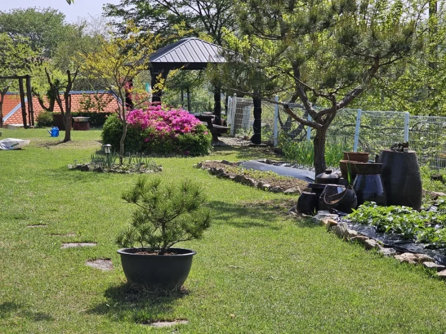 무엇보다, 갖고 싶던 마당을 넓게 들여 소망을 이룬 셈이다. 흙 마당 대신 잔디를 심었다. 생각보다 관리가 쉽지 않고, 봄부터 여름까지는 잡초 뽑느라 시간 가는 줄 모른다. 호미 들고 앉으면 한나절이 후딱 간다. 기꺼이 감내하는 무념무상의 행복이랄까.