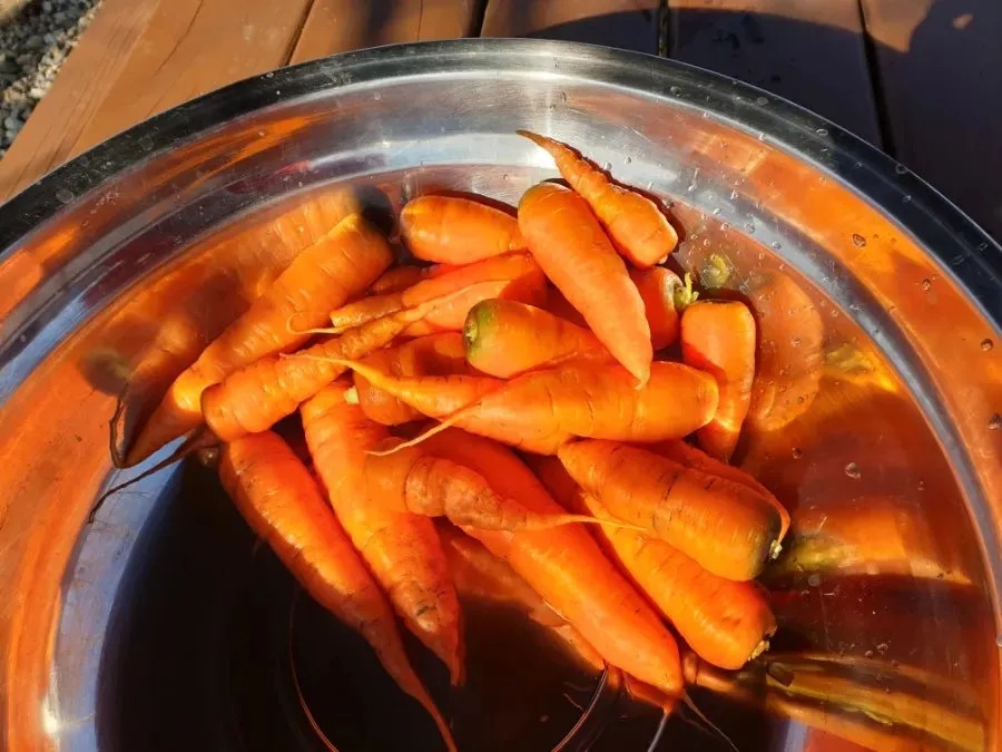 아삭한 식감도 늦가을 그대로다. 퇴비를 많이 안 해서 작지만 단단하고 매끄러운 몸매도 여전하다. 당근은 색까지 곱다.