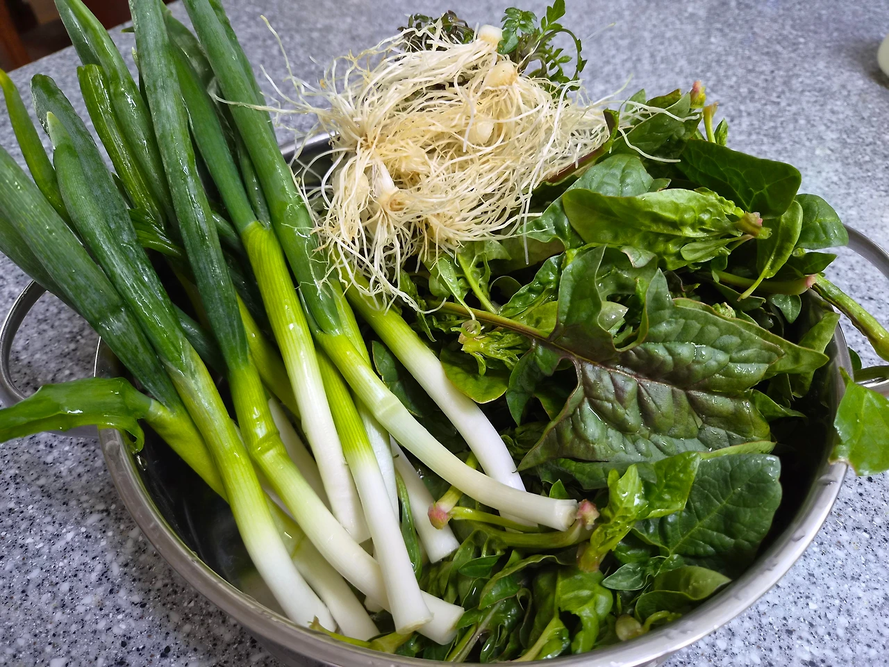 달큰한 시금치, 움파의 싱그러운 색감과 진한 향, 그리고 흙의 기운을 고스란히 품은 냉이로 저녁상을 차렸다.