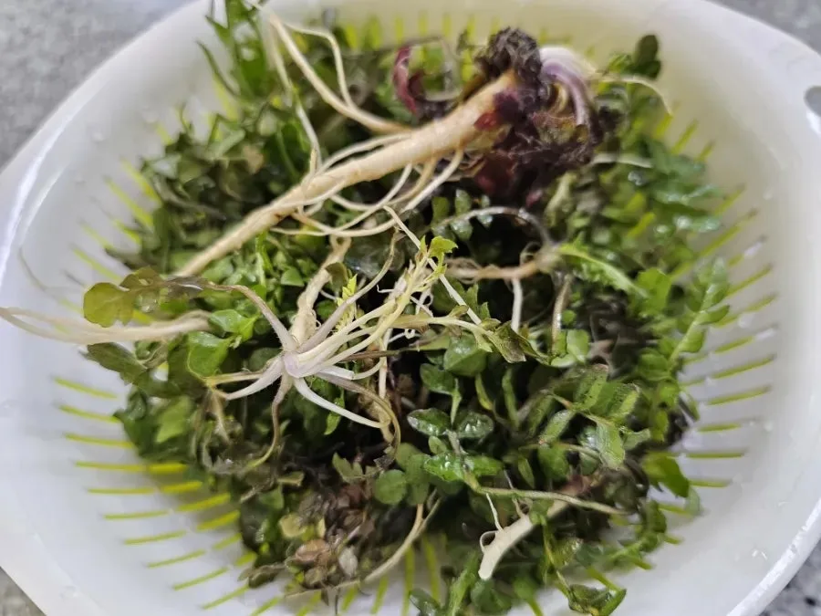 이어 텃밭으로 옮겨, 월동 시금치와 겨울을 난 움파를 몇 뿌리씩 캤다.