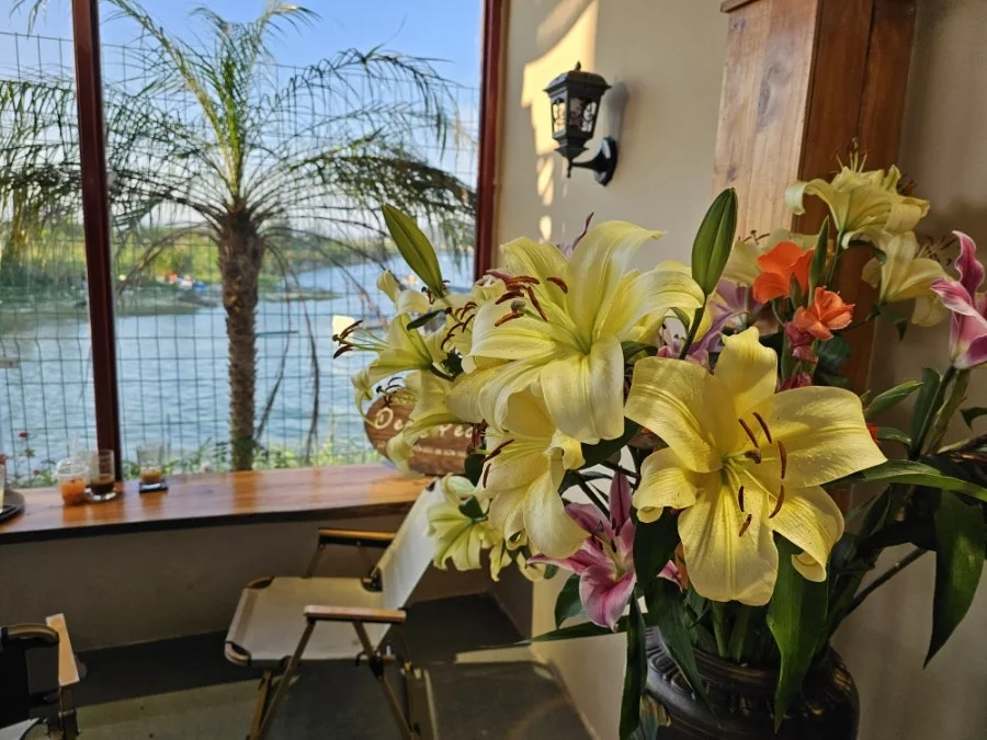 돌아오는 길에 한강 하구 외딴 마을 카페에 들렀다. 한강이 바다와 만나는 지점이다. 고기잡이배가 떠있는 바다 풍경이 창에 걸려있고 은은한 백합 향기가 머무는 자리에서 라테 한 잔은 노곤한 오후를 평온하고 달콤하게 녹여 주었다. 오롯이 나만을 위한 이런 시간을 위해 우리는 여행을 떠나는 건지도 모른다.