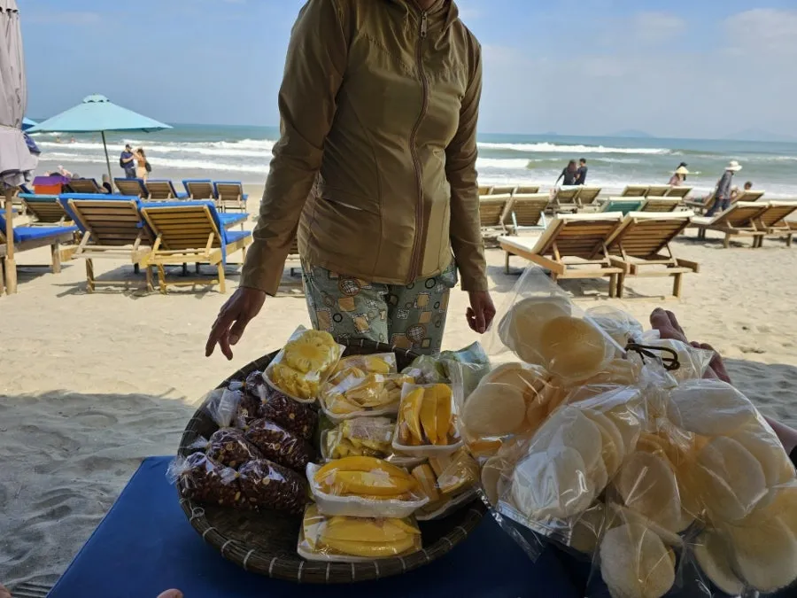 간혹 과일이나 군짓 거리, 소소한 공예품을 들고 행상인들이 말을 붙여 오는 것이 전부였다. 그린 망고 한 팩과 볶은 땅콩을 샀다. 다른 상인들까지 왔다. 한두 마디 아는 한국어로 이쁘다, 멋지다를 연발했다. 크게 살만한 물건도 없고, 가격도 파는 사람 맘대로였지만, 코코넛 나무로 만든 젓가락을 한 세트 샀다.