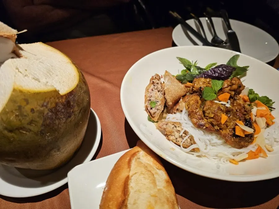 예약을 해야만 갈 수 있다는 '모닝글로리' 식당을 찾아갔다. 운 좋게도 투본강이 색색으로 물드는 걸 볼 수 있는 창가에 자리를 잡았다. 생각보다 품격 있는 음식점이라 안방 비치에서 편하게 늘어져 있던 차림으로 음식을 받기가 민망했다.