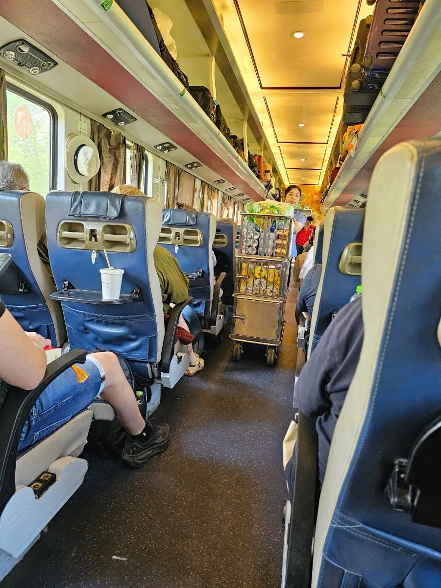 스낵, 음료수 등을 싣고 통로를 오가는 카트는 홍익회에서 귤이나 계란을 사 먹던 옛날 기차여행의 추억을 소환했다. 점심 무렵이 되자 밥과 국을 큰 통에 싣고 다니는 이동 밥차도 오갔다.