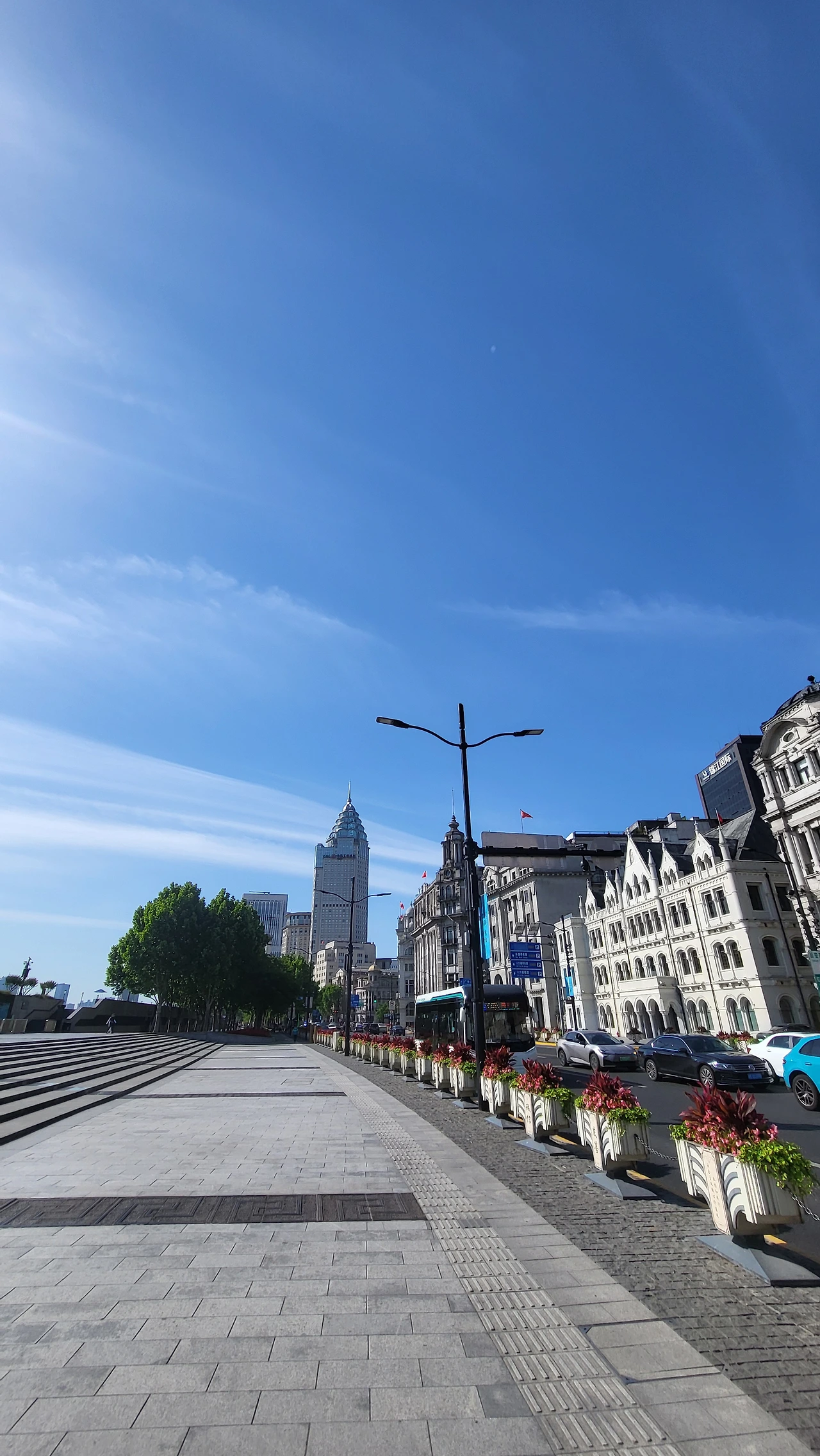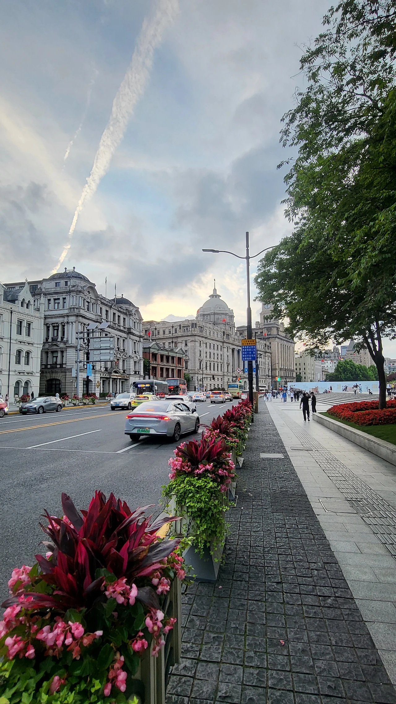 나 홀로 와이탄 큰 도로 옆 인도를 걸었다.