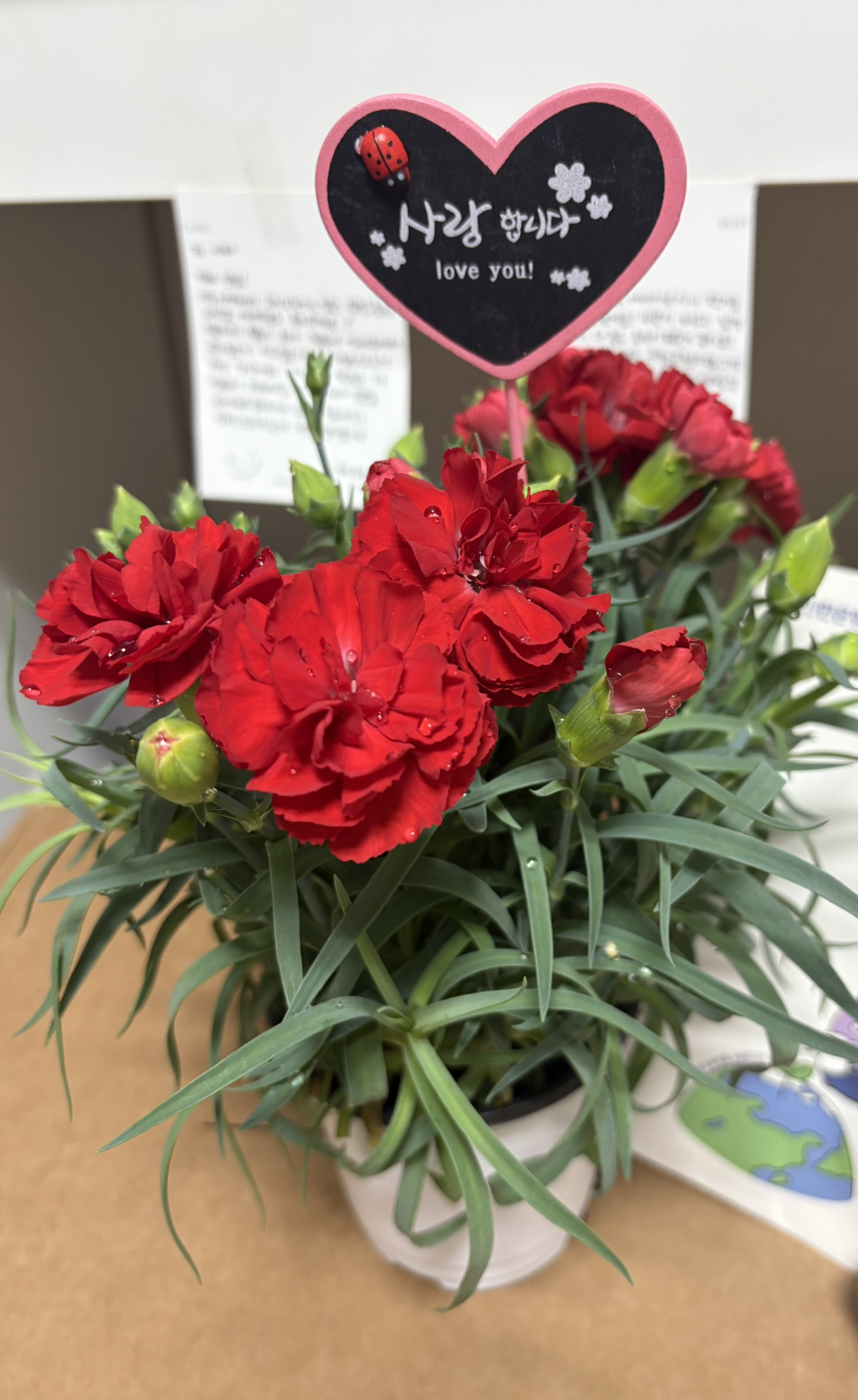 아들은 나름 큰 금액의 현금 용돈을! 딸아이는 정성스런 편지와 싱그러운 자그마한 카네이션 화분을 선물해주었다! 어버이날 이틀전부터 기대감을 드러내며 아이들 옆구리를 찌른 보람이 있었다 ㅋㅋㅋㅋ 작년에는 아이들도 별 감흥없이 띡 전달하는 느낌이었다면 올해는 몽글몽글한 진심이 느껴졌다. 벌써 중고등학생이 된 그들도 조금씩 조금씩 성장해가고 있는 것이겠지…