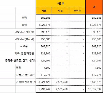 따라서 남편과 여러 번 상의 끝에 내가 작성하기 쉬운 장부를 만들었는데, 엄연히 따지면 회계장부라고 볼 수없기는 하다.