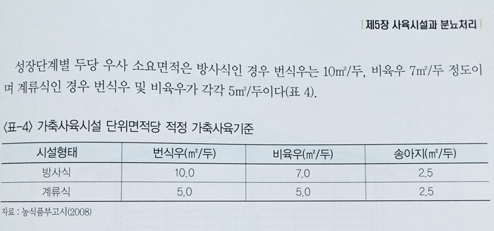 참고) 두당 우사 소요면적(우리농장 밀사아니에요!)