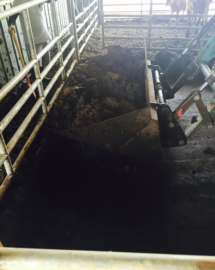 거름을 치우는 방식은 먼저 소들을 한쪽으로 다 몰아넣고, 앞쪽에 있는 거름을 치워준다. 그런다음 다시 소들을 반대편으로 몰아넣고, 나머지 부분의 거름을 치워주는 형식으로 일을 진행한다.